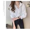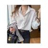 Primavera 2024 Roupas Femininas Nicho Top Retrô Hong Kong Estilo Camisa Listrada Branca Design Sense Camisa Empilhada Levemente Madura