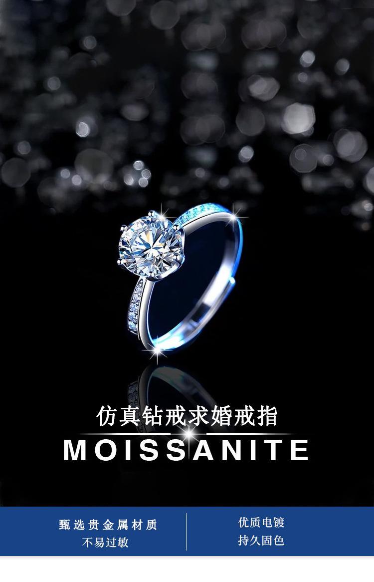 Anel de imitação de moissanite feminino micro-incrustado anel de zircão proposta de casamento adereços anel de diamante para enviar namorada uma geração de cabelo