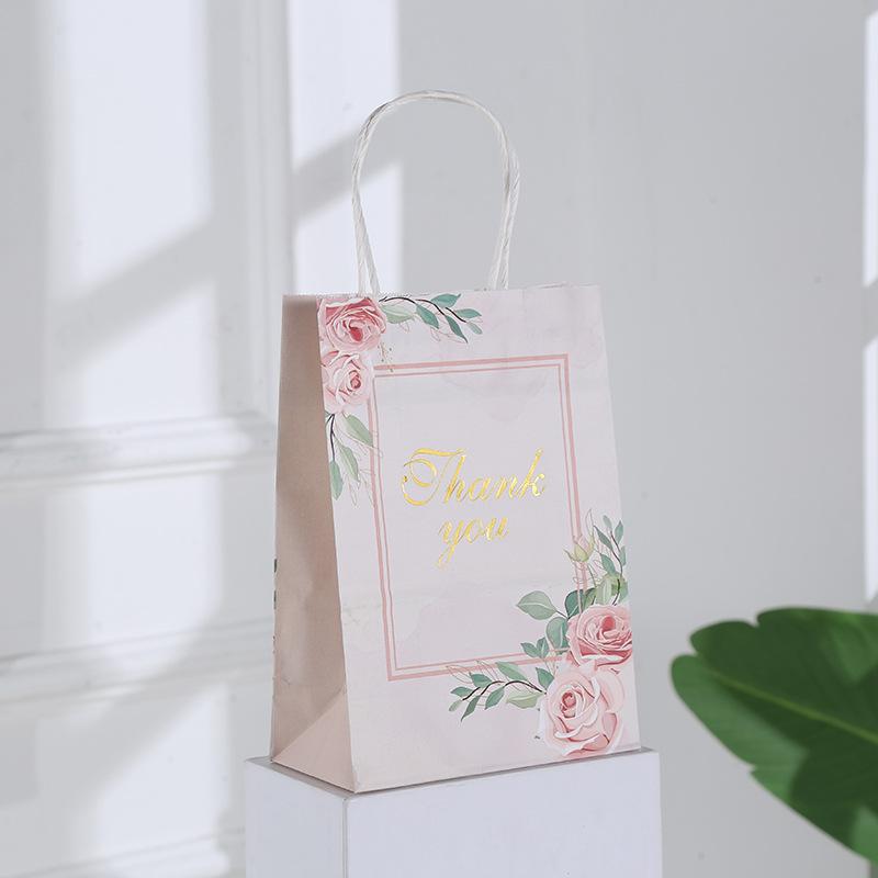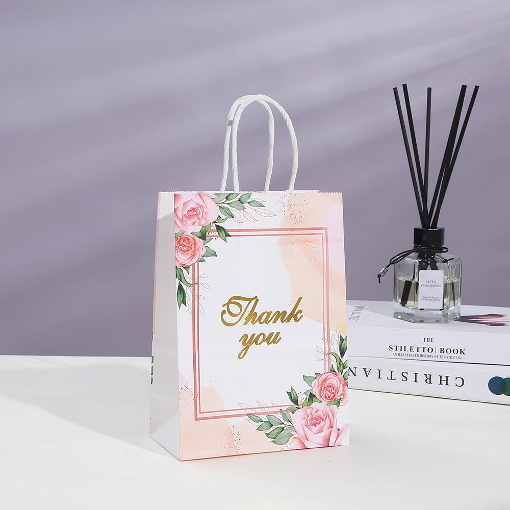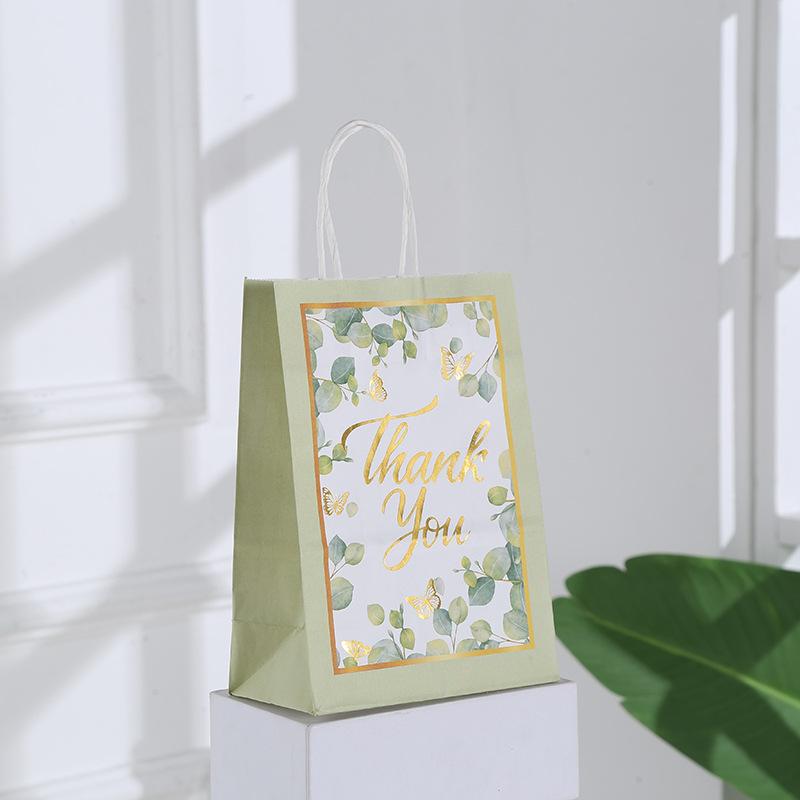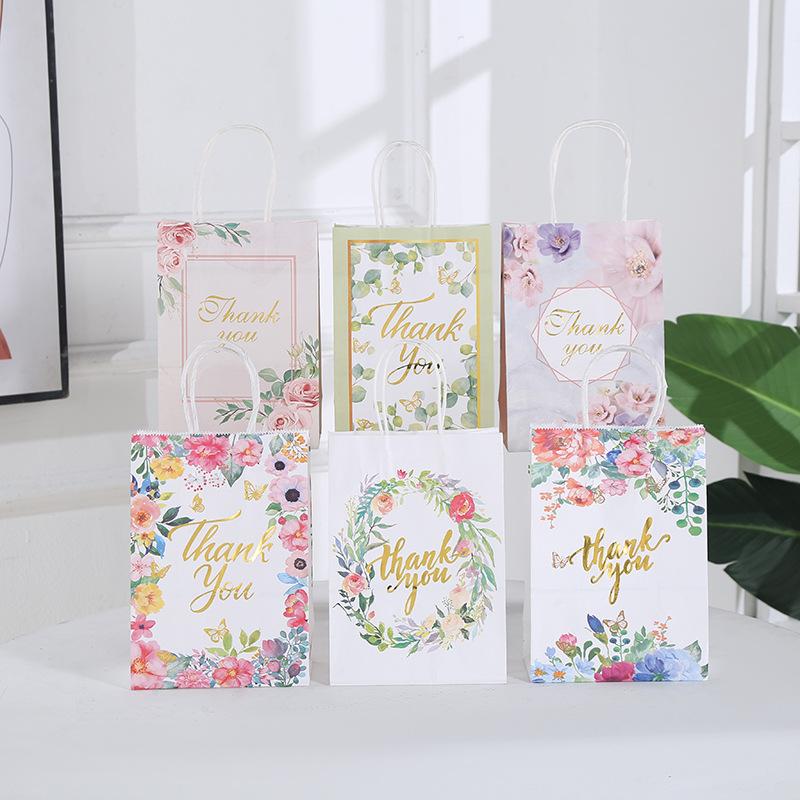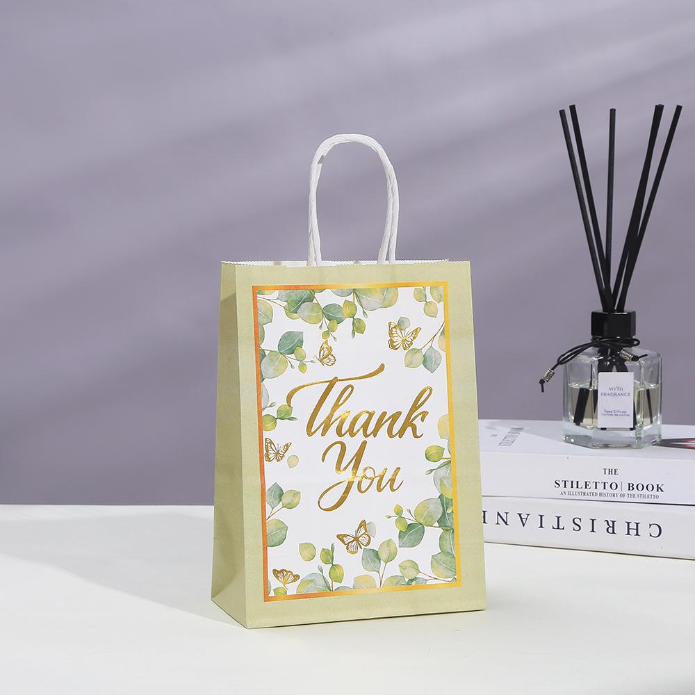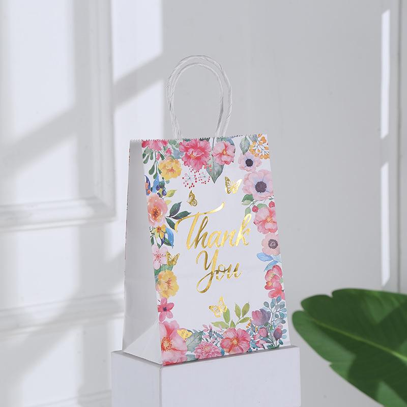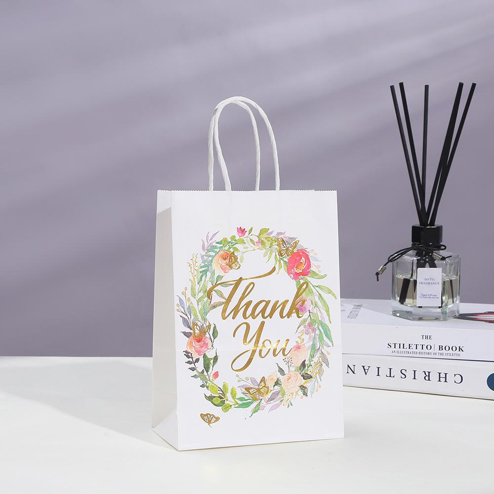 Sacola de Presente para o Dia dos Professores, Sacola Universal de Papel Kraft, Bolsa da Moda Série Flores e Grama com Bronzeamento, Sacola de Presente para Flores