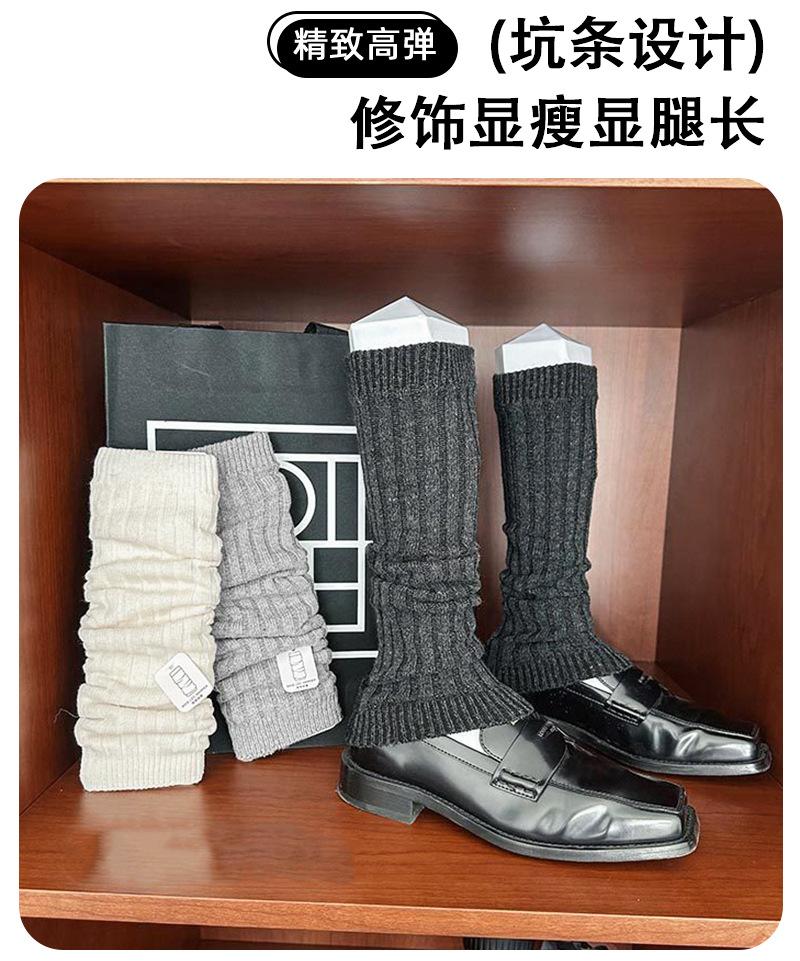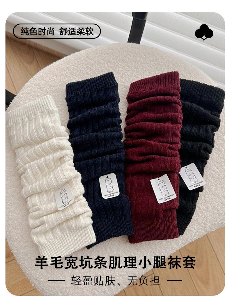 Outono Nova Lã Uma Peça De Malha Larga Pit Textura Meias De Panturrilha Das Mulheres Cor Sólida All-match Meias Empilhadas Quentes