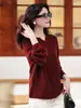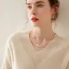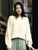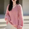 Suéter Tricotado Sem Costura 100% Lã Pura Solto Decote V Outono 2025 Novo Top de Tricô