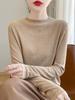 Suéter de Lã Penteada de Gola Meia Alta Manga Comprida para Mulheres Outono e Inverno Novo Suéter Cor Sólida Solto Macio Cera Camisa Base para Todos os Fósforos