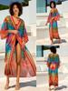 Novo posicionamento de rayon europeu e americano impresso feriado solto protetor solar cardigan feminino praia casaco biquíni overshirt