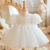 Vestido Infantil 2025 Outono Estilo Coreano Manga Bufante Vestido de Princesa Vestido de Primeiro Aniversário de Bebê Vestido de Princesa para Celebração de Aniversário