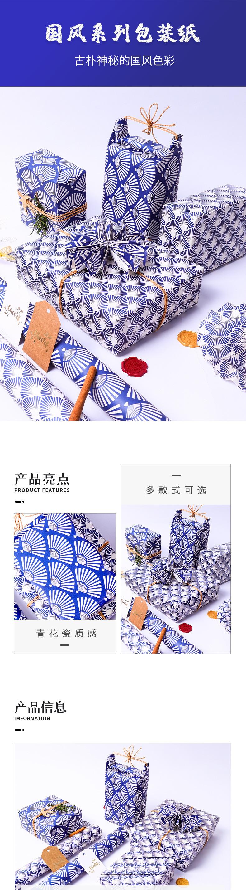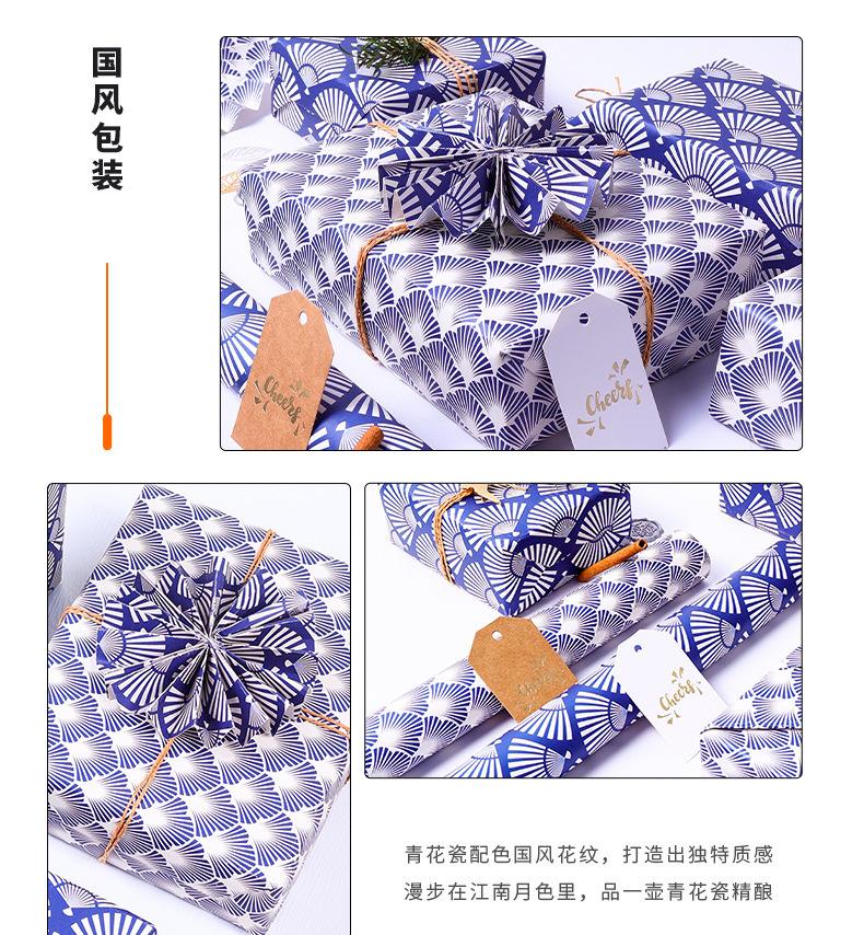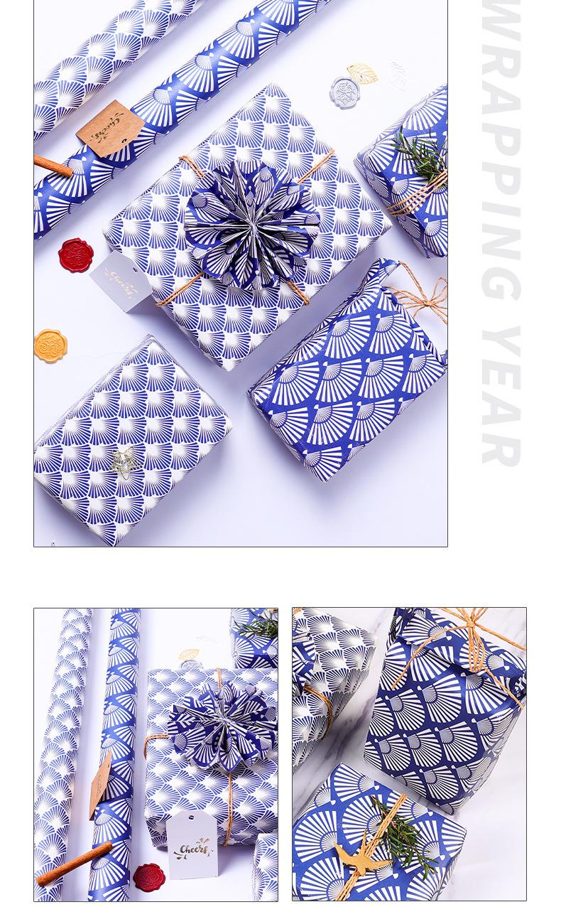 Novo estilo simples vento papel de embrulho padrão azul Ano Novo Festival da Primavera DIY papel de presente atacado