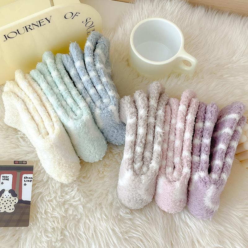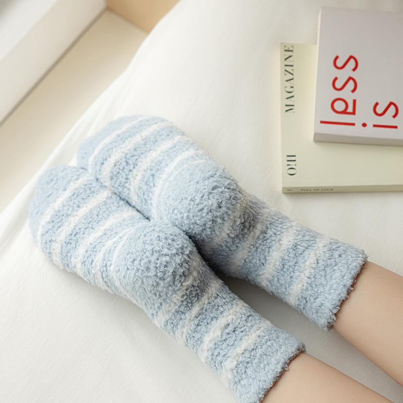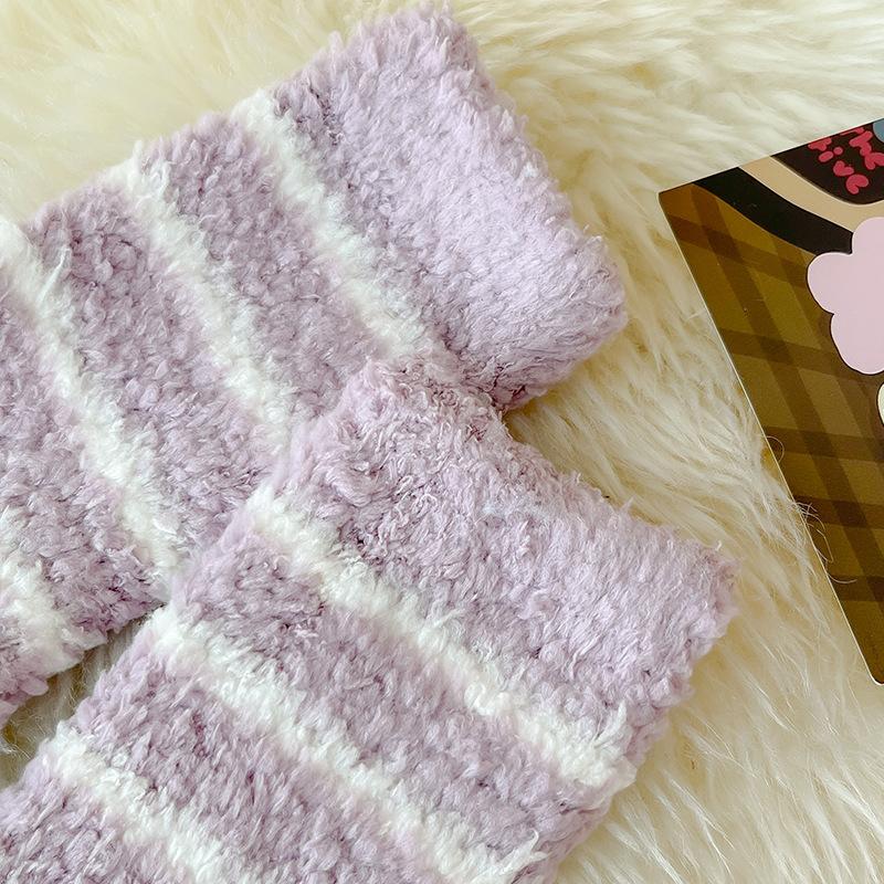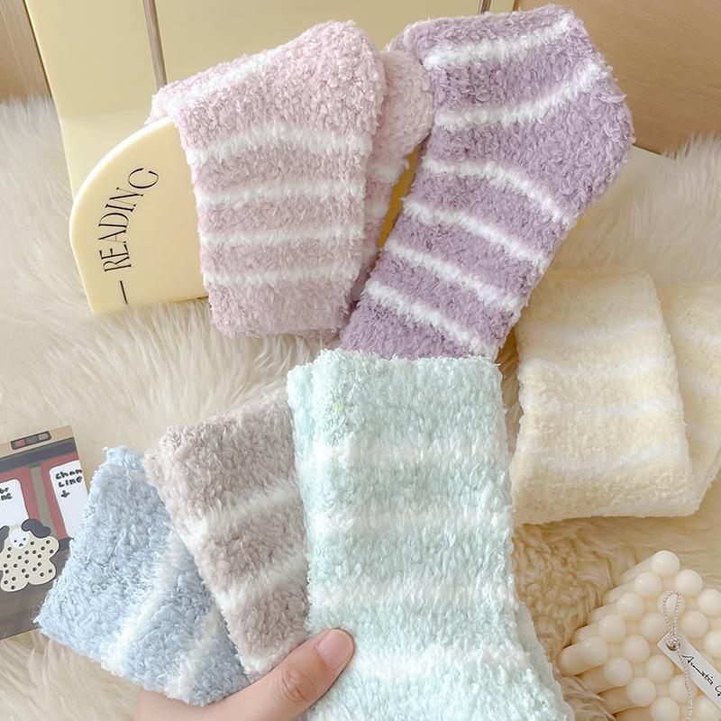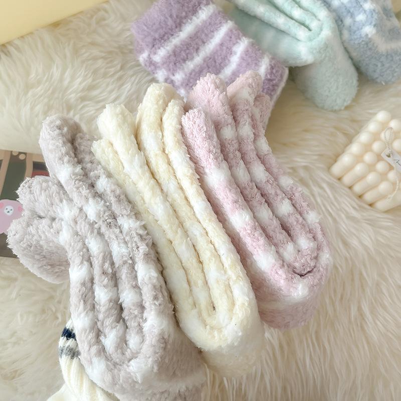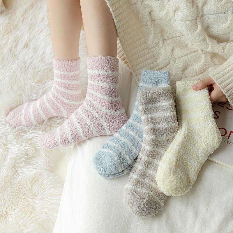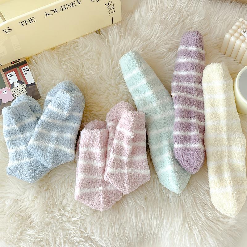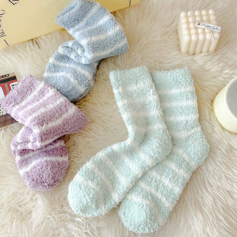 Outono e inverno novas meias listradas senhoras engrossadas lã coral meias de veludo meias quentes meias casuais para dormir atacado