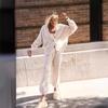 Europeu e Americano Transfronteiriço Feminino de Duas Peças Camisa Feminina 2024 Lel Manga Comprida Primavera e Outono Casual Calças de Cor Sólida Terno de perna larga