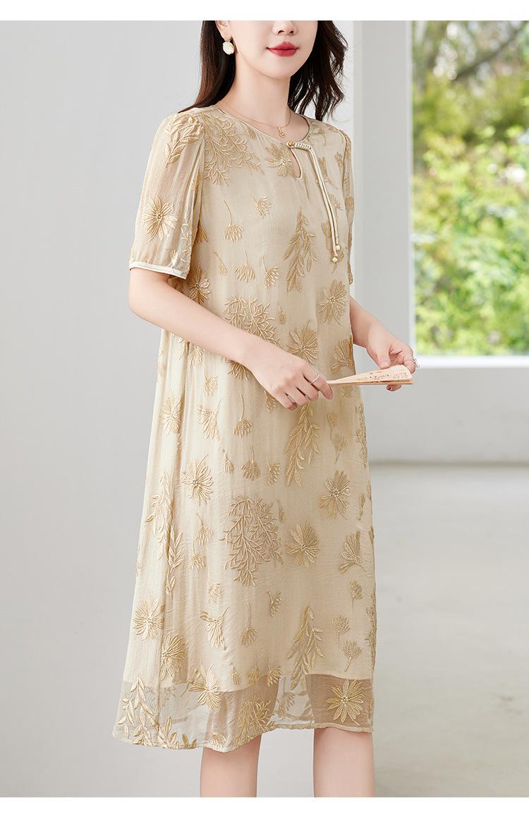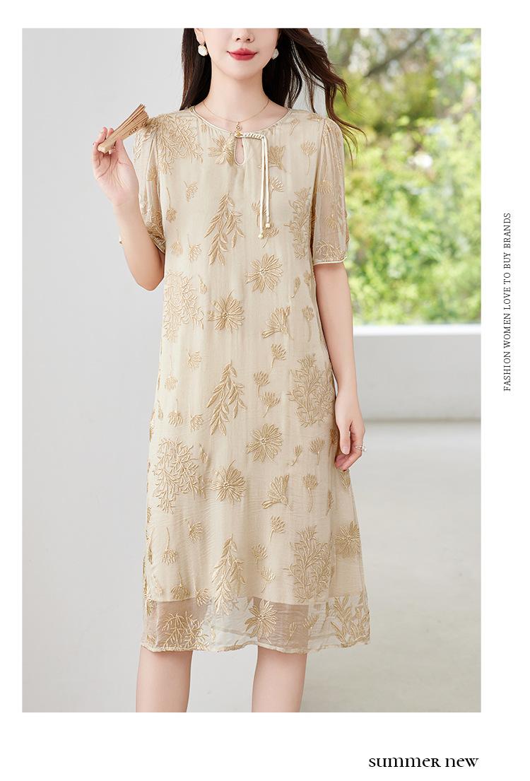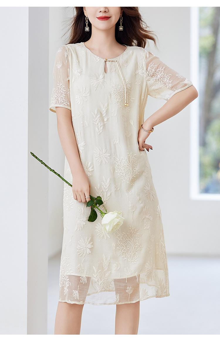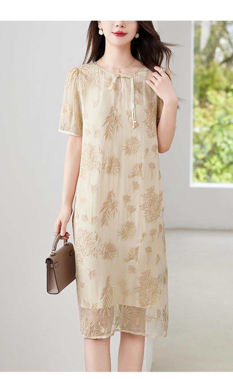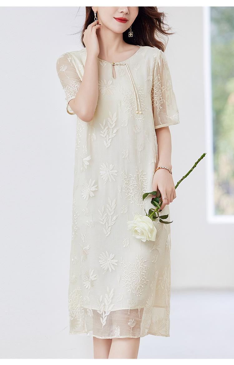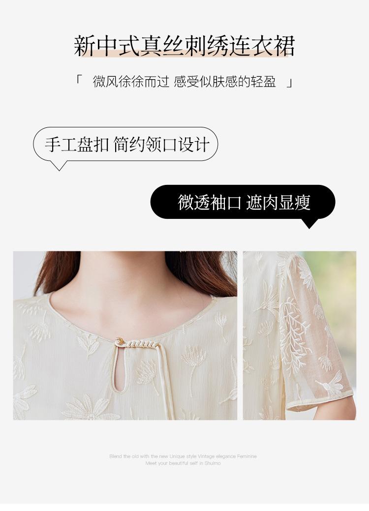 Vestido Original Quatro Estações Seda Verde Feminino Seda de Amora Gola Redonda Novo Estilo Chinês Bordado Saia Midi 82496780