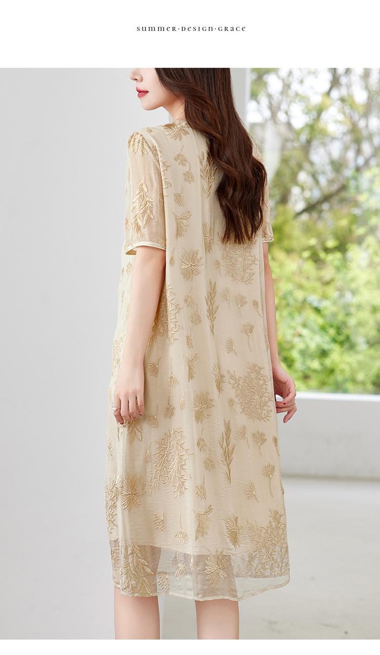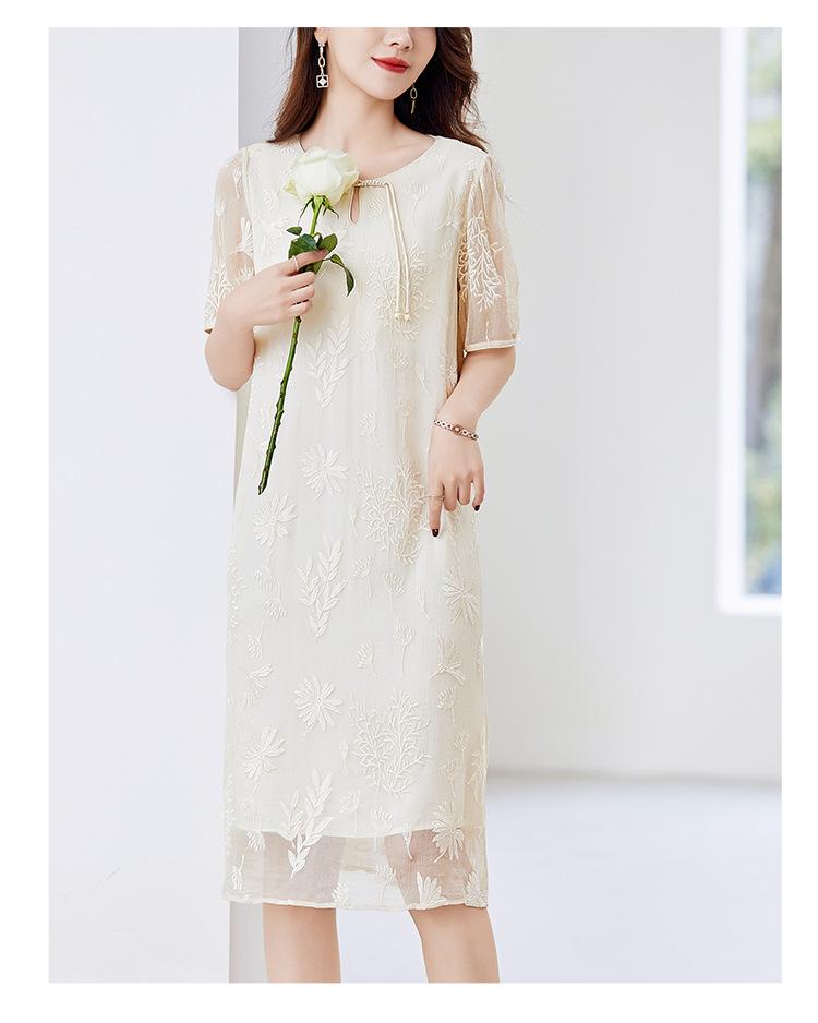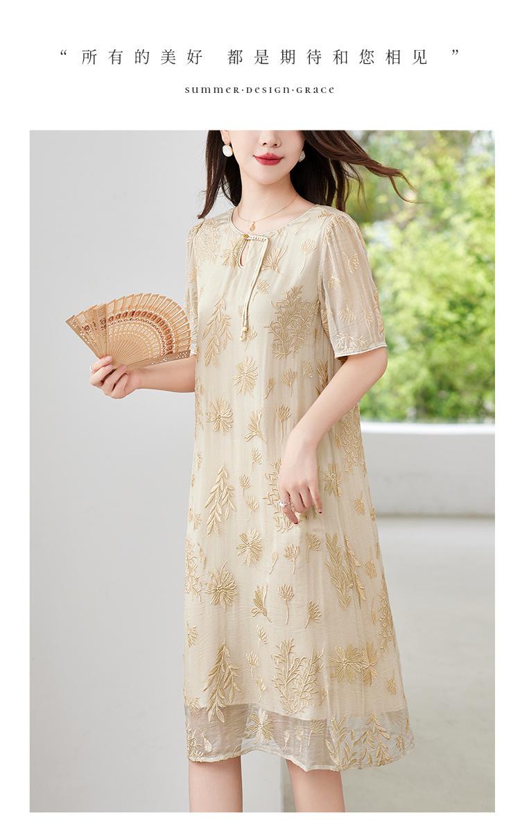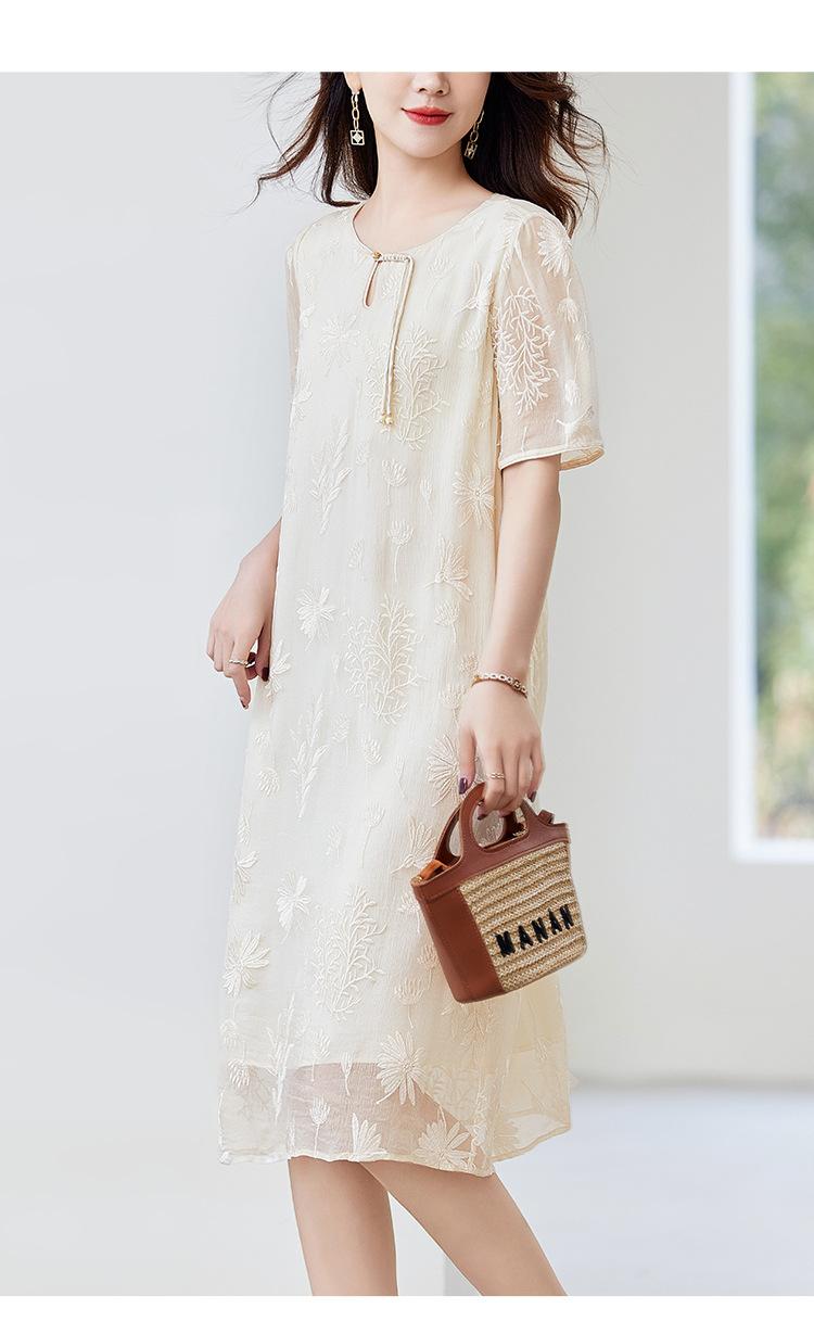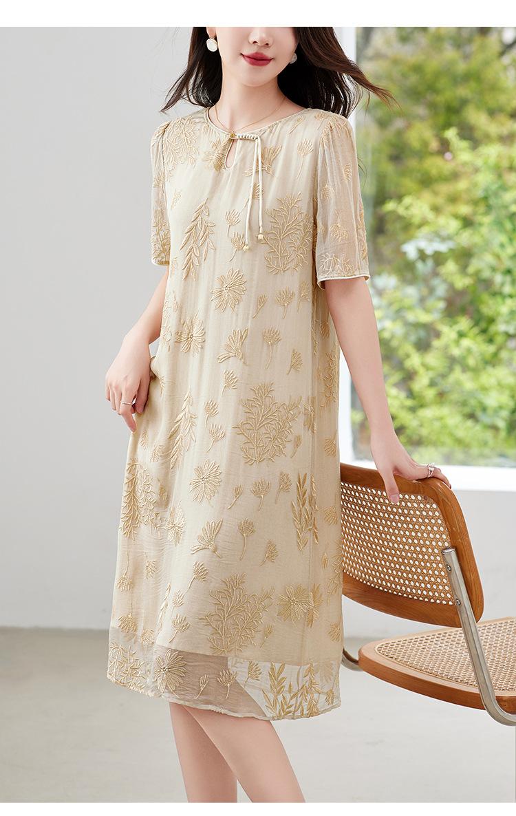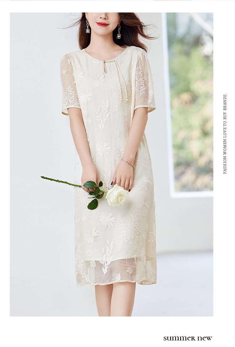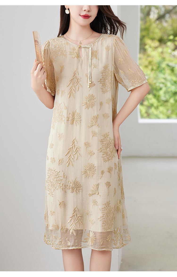 Vestido Original Quatro Estações Seda Verde Feminino Seda de Amora Gola Redonda Novo Estilo Chinês Bordado Saia Midi 82496780