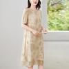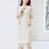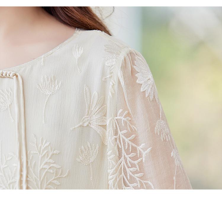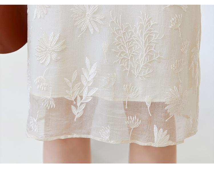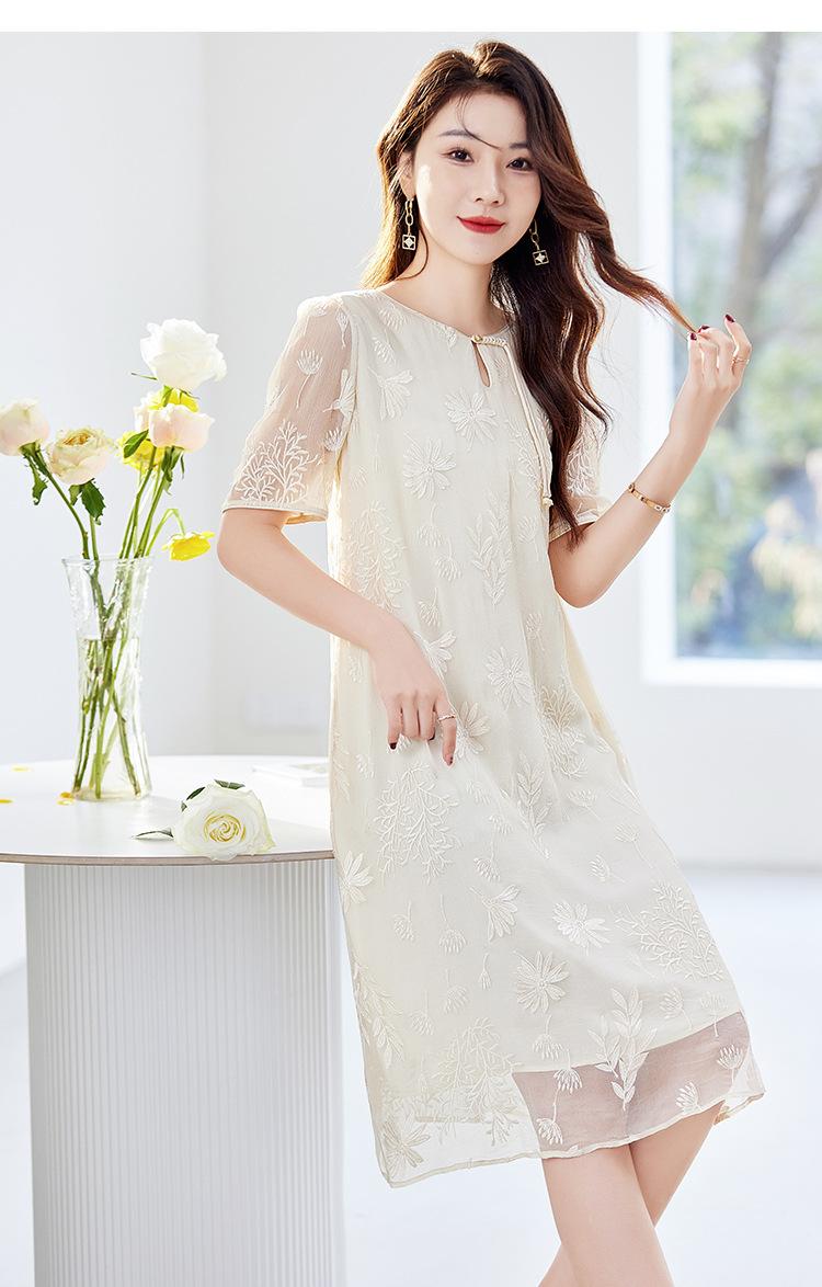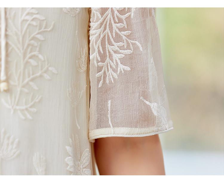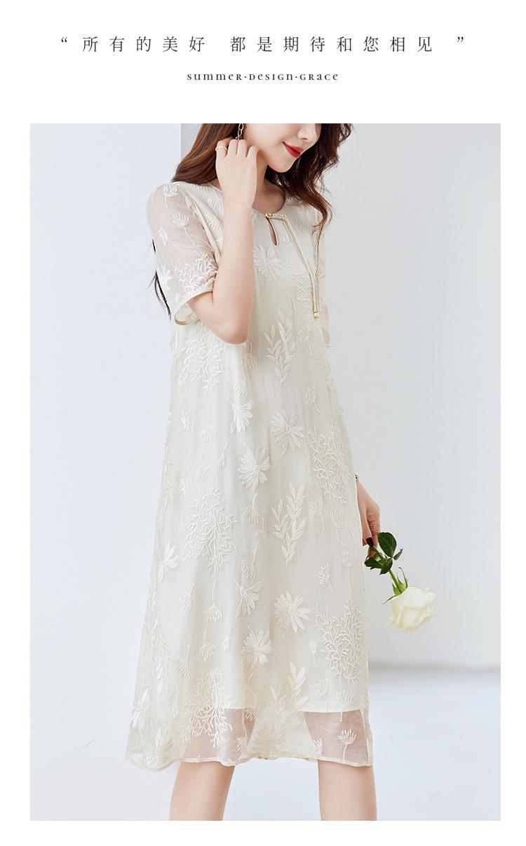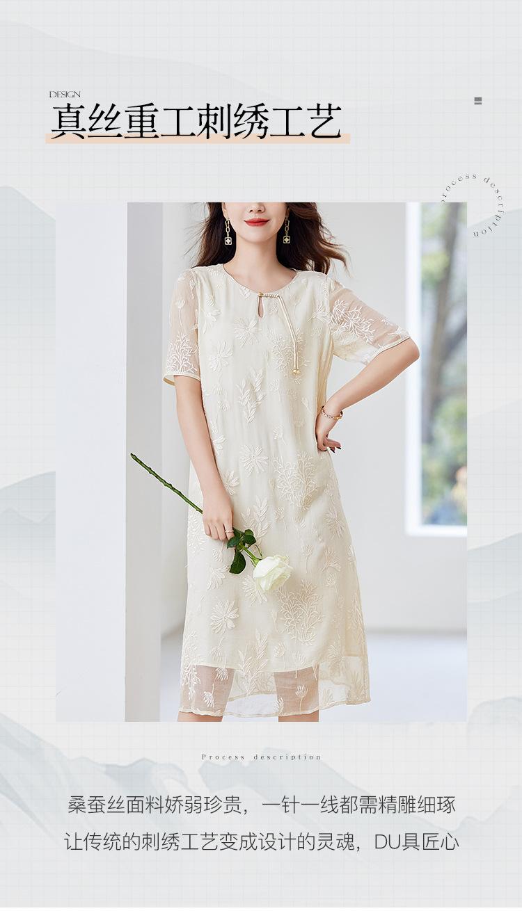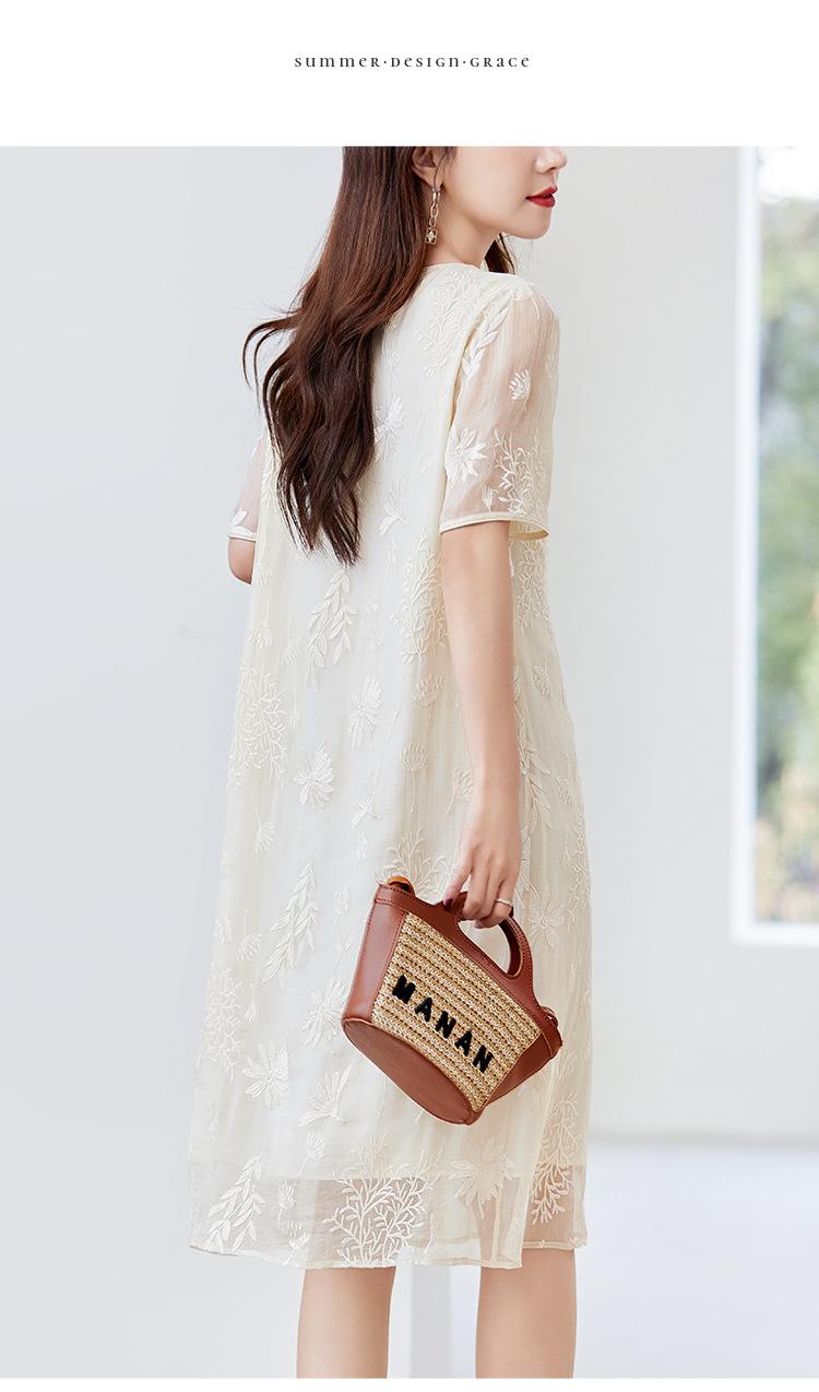 Vestido Original Quatro Estações Seda Verde Feminino Seda de Amora Gola Redonda Novo Estilo Chinês Bordado Saia Midi 82496780
