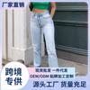 Amazon Aliexpress 2025 Nova Roupa Feminina Europeia e Americana Transfronteiriça Jeans Azul Claro de Cintura Alta Calças Retas Soltas Femininas