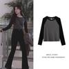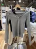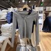 Gray threaded three-button long-sleeved t-shirt