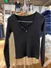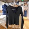 Black ribbed three-button long sleeve t-shirt