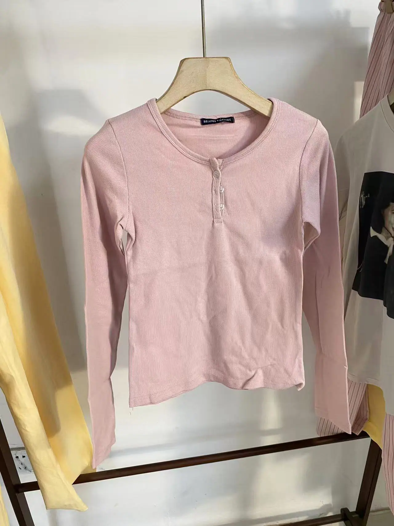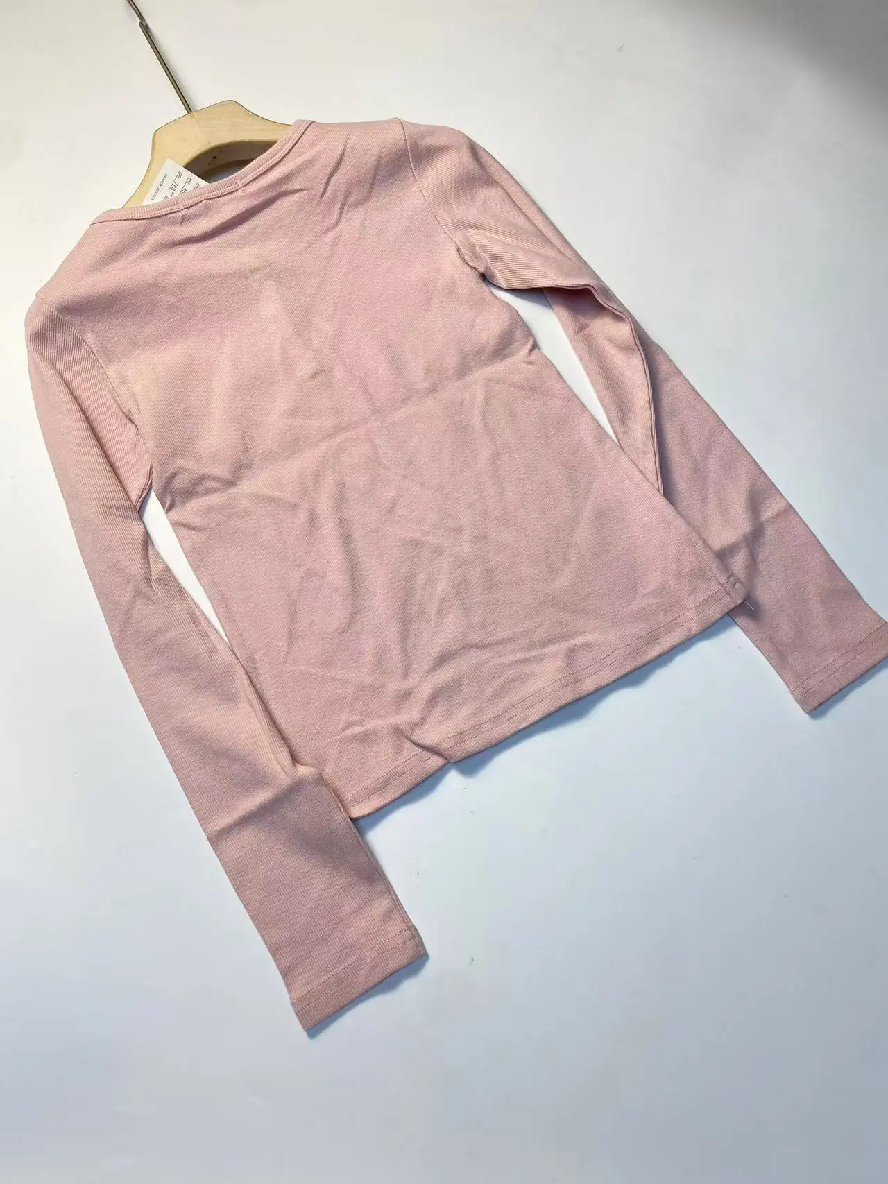 Pink threaded three-button long-sleeved t-shirt