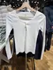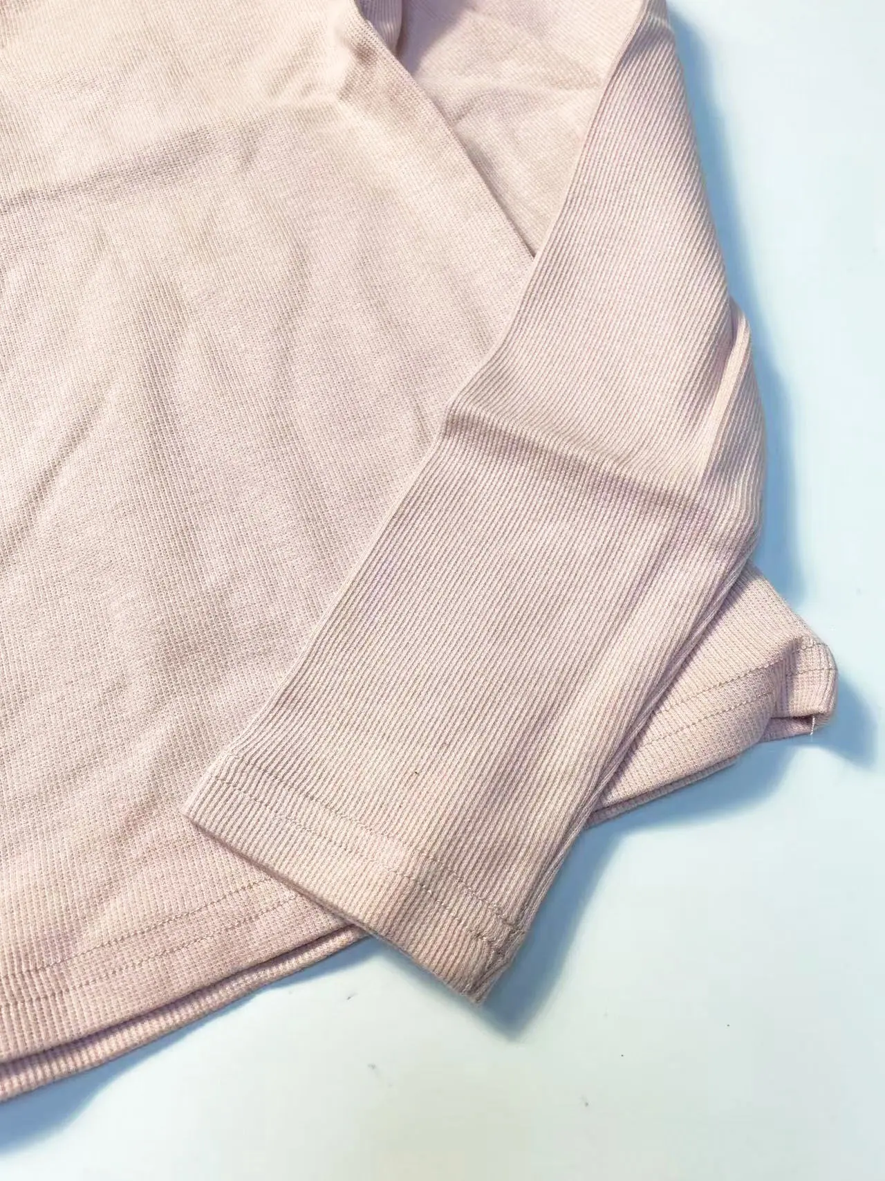 White ribbed three-button long-sleeved t-shirt