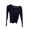 Navy ribbed three-button long-sleeved t-shirt