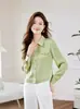 2024 Verão Nova Lapela Bolso Camisa de manga comprida Mulher Puro Desejo Vento Multi-desgaste Solto Top Feminino