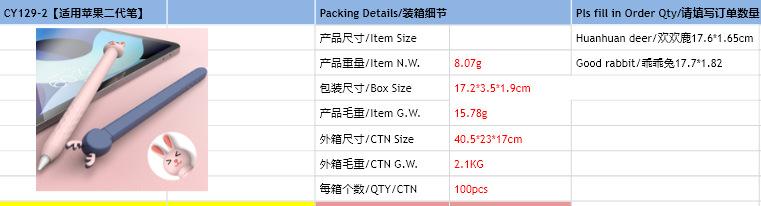 Para apple 2 geração caneta caso ipad smart pen capa protetora silicone cartoon pet apple stylus case