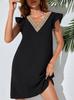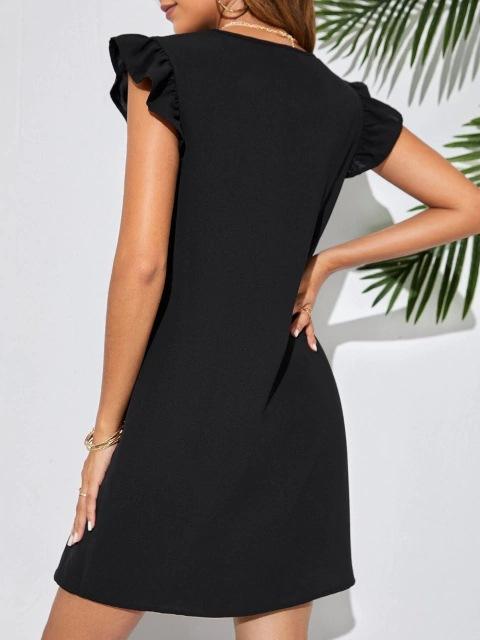 2023 Verão Europeu e Americano Comércio Transfronteiriço Roupas Femininas Amazon Novo Vestido de Manga Voadora com Decote em V