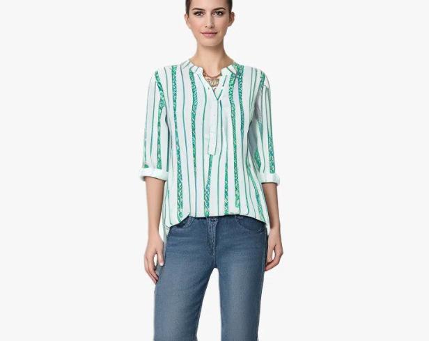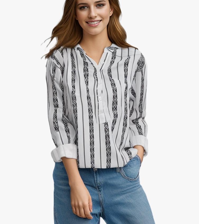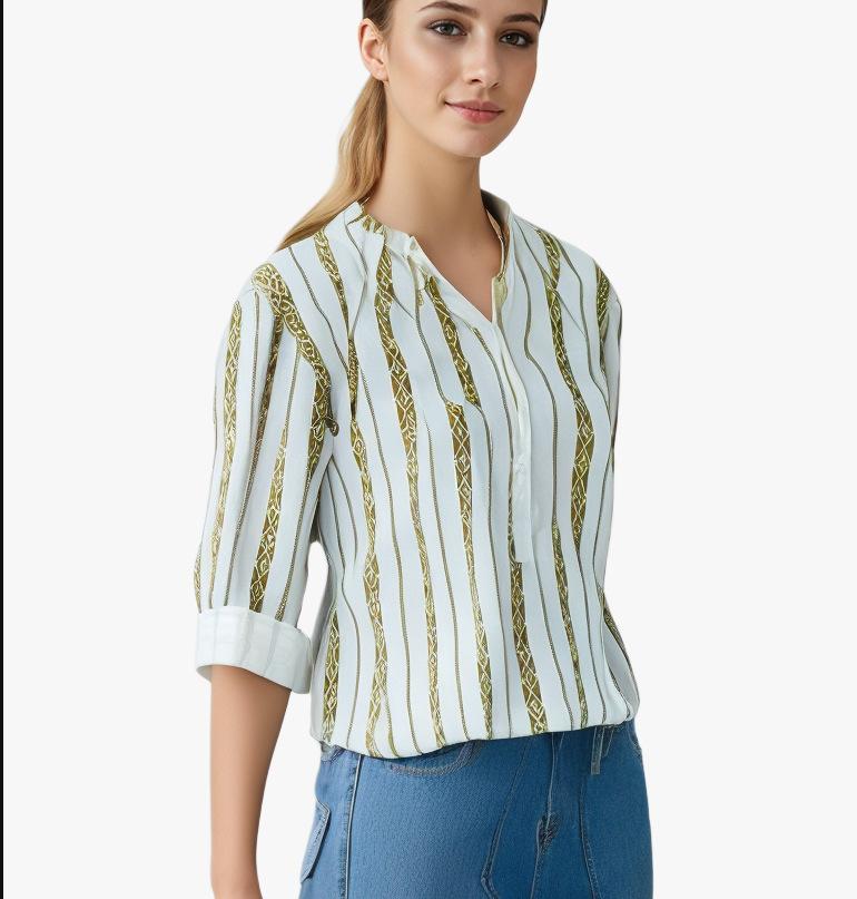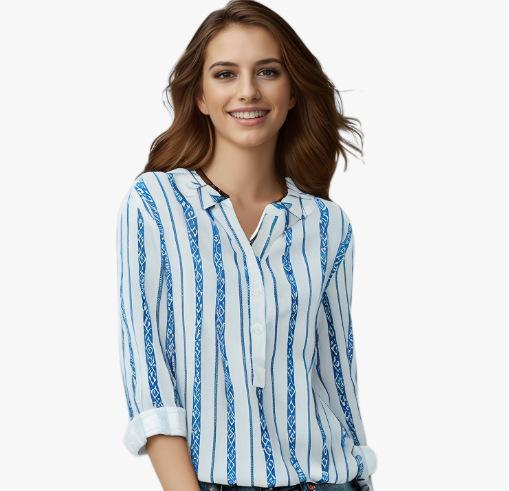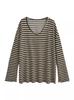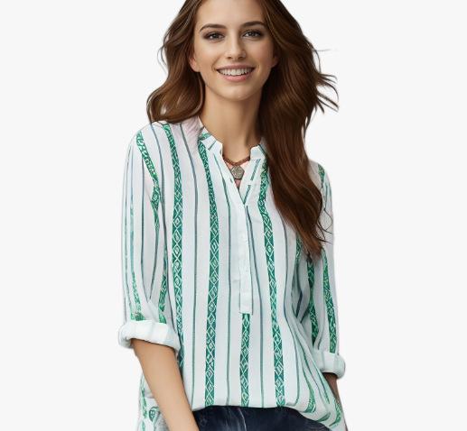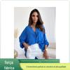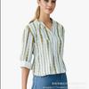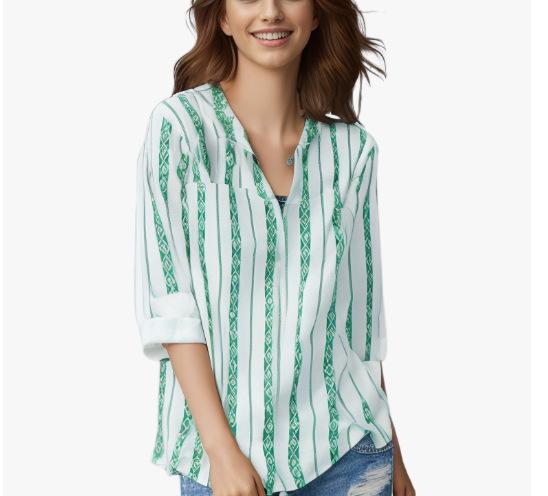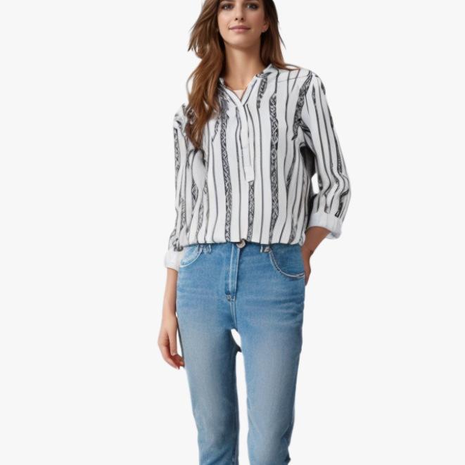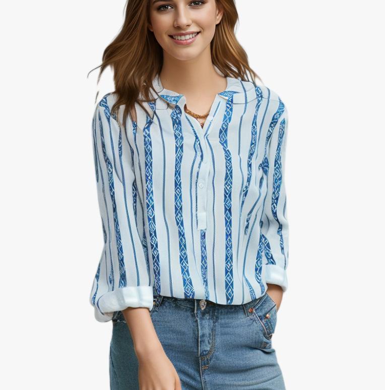 Camisa de botão estampada listrada nova para mulheres europeias e americanas transfronteiriças soltas de manga comprida