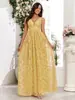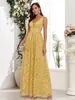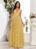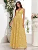 2024 Novo Padrão Sem Mangas Renda Duplo Decote Em V Elegante Vestido De Noite Um Grande Balanço De Volta Com Zíper Totalmente Forrado Vestido De Festa