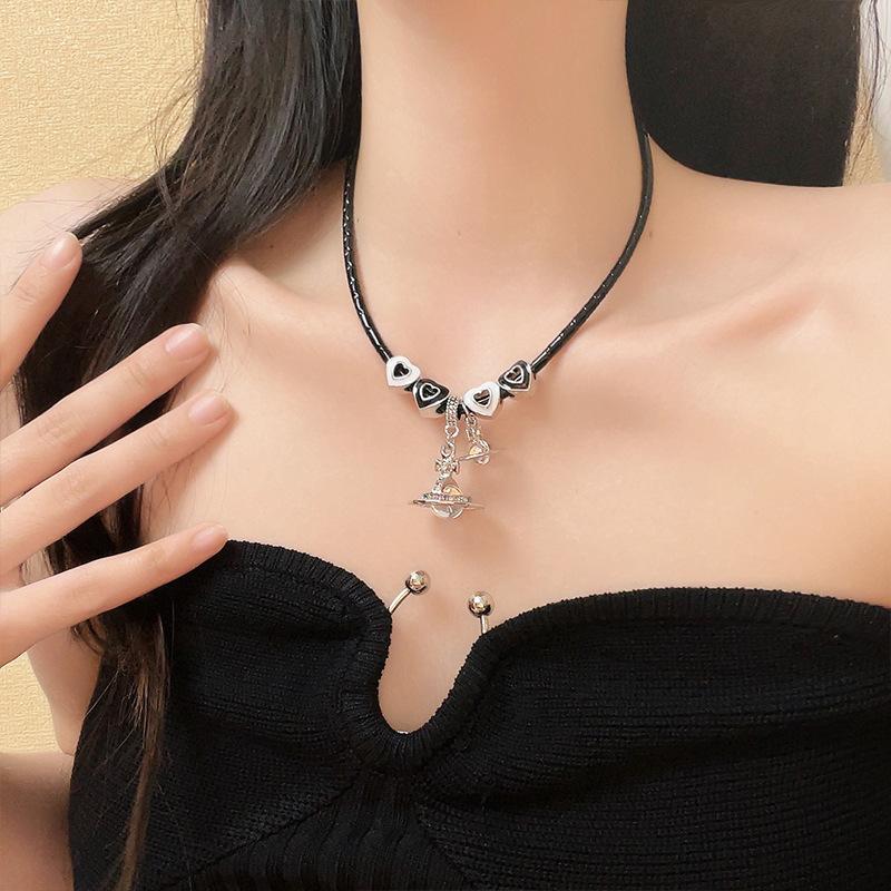 Moda amor UFO colar de corda preta para mulheres nicho de luxo leve requintado novo estilo chinês 2023 novo colar simples