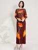 Conjunto de Saia e Casaco com Estampa de Tulipa Francesa para Mulheres no Outono Nova Moda Elegante Top de Manga Morcego Saia Conjunto de Duas Peças