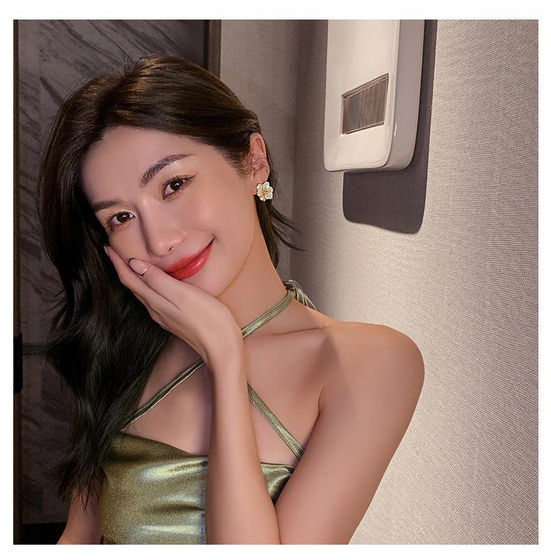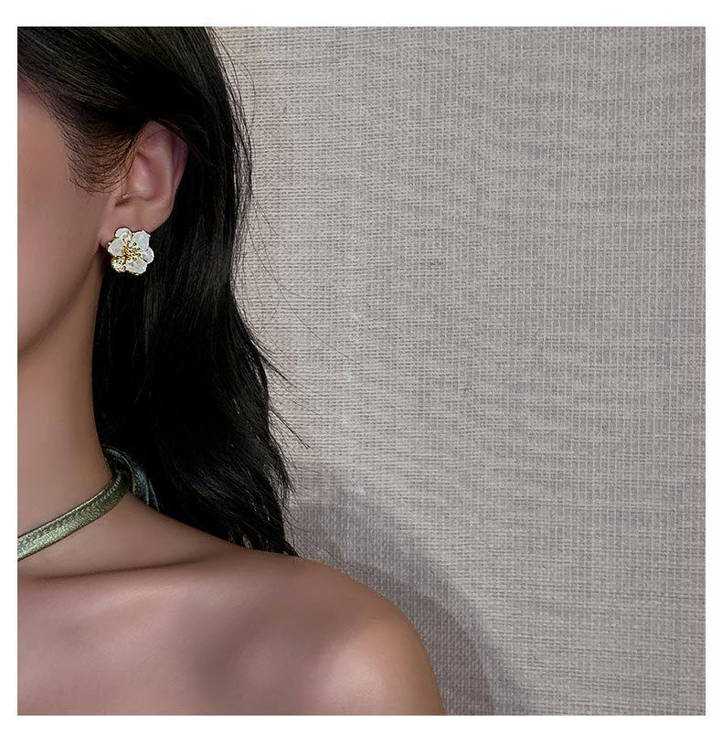 S925 brincos de agulha de prata femininos design de nicho brincos simples 2023 novos brincos de estilo de fada de flor branca da moda