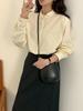 Camisa Feminina Verão 2025 Coreana Dongdaemun Design Elegante Camisa Cor Pura Lapela Pequena Delicada Mancha Ovo