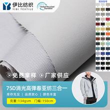 Tecido de jaqueta de montanha três em um, pongee de poliéster altamente elástico fosco 75D, à prova d'água, à prova de óleo e manchas