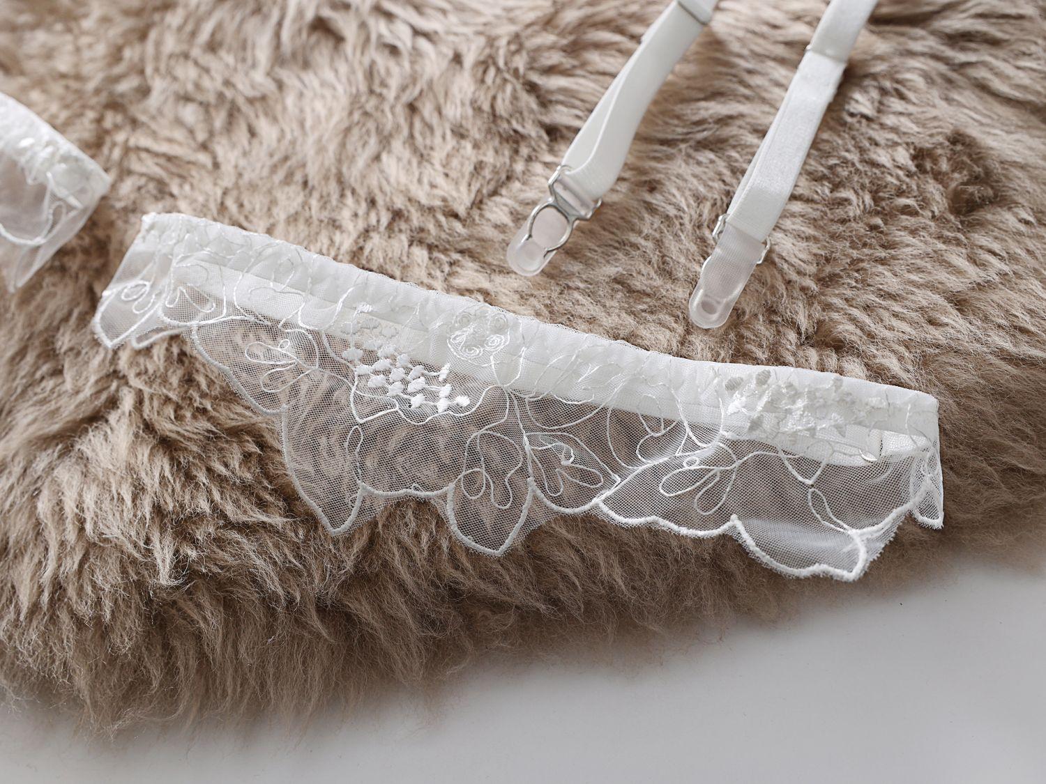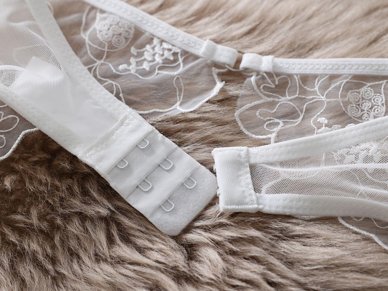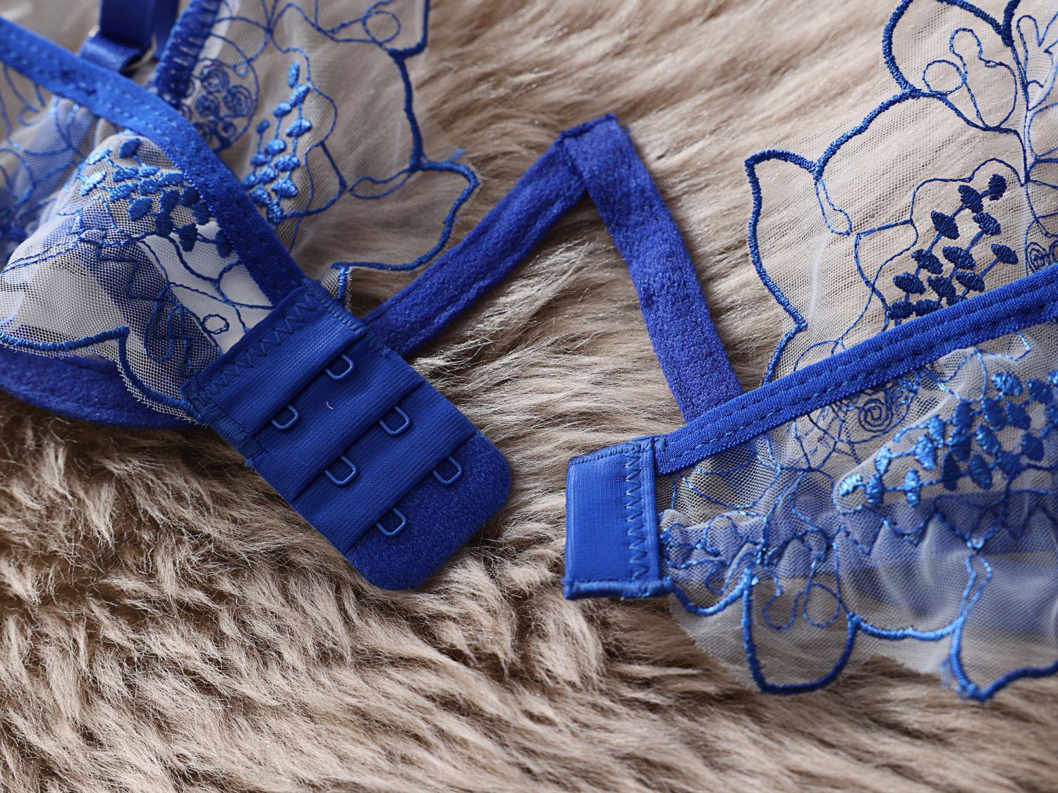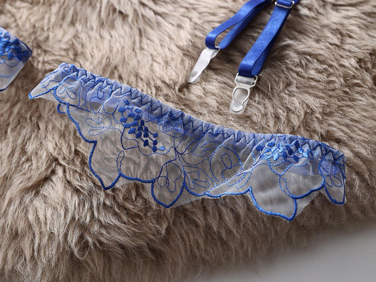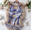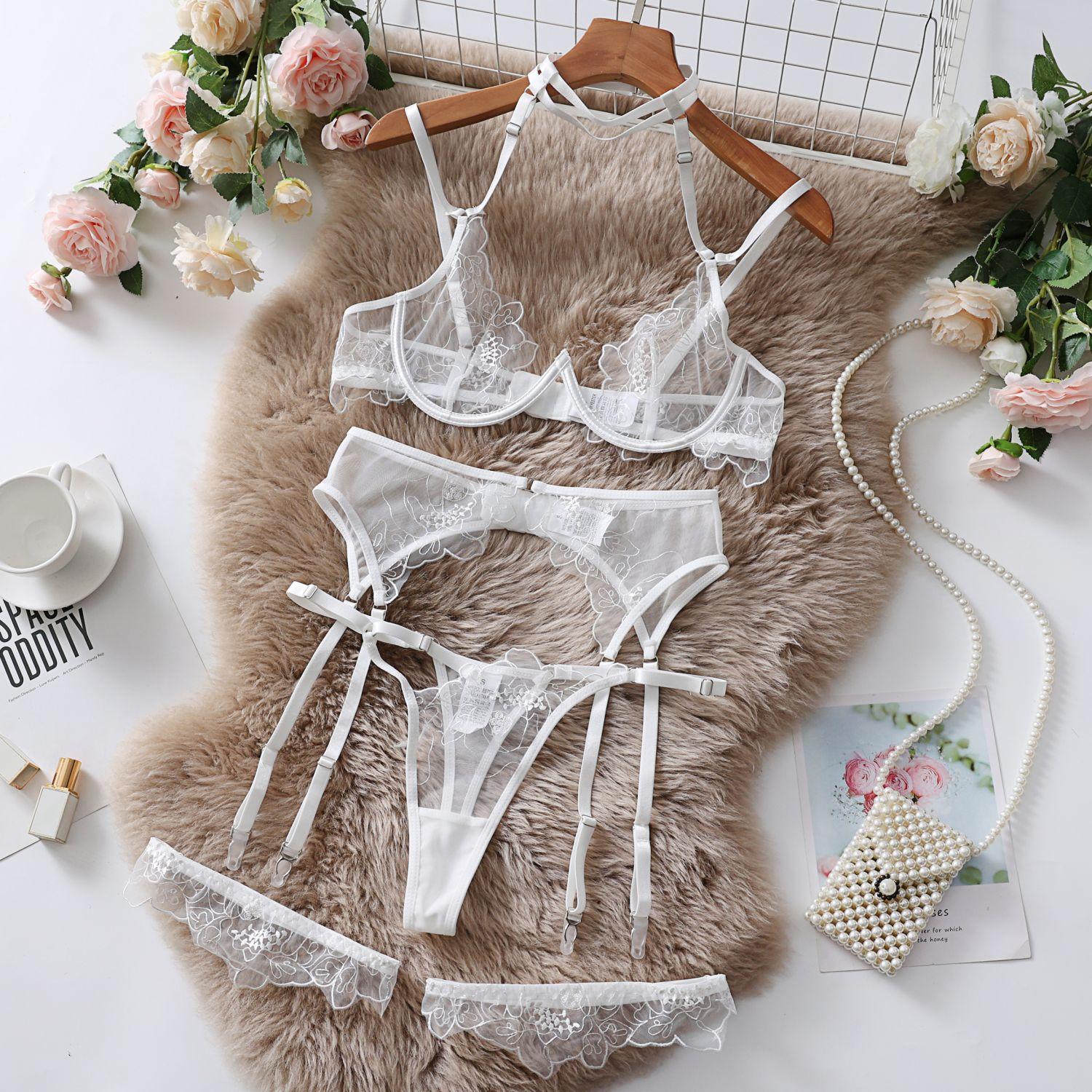 Dnika russo sexy halter lingerie sexy bordado see-through malha roupa 4-piece sutiã terno