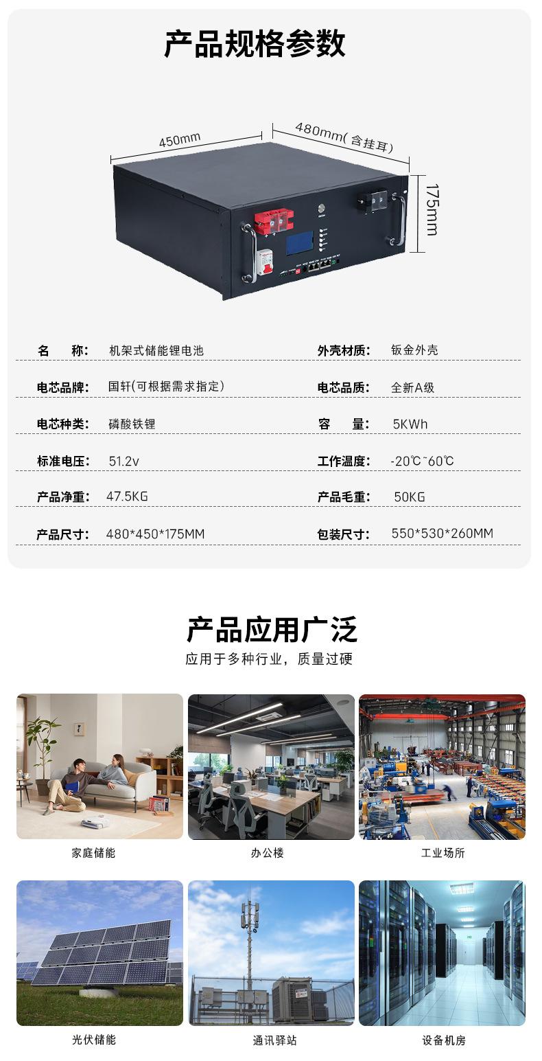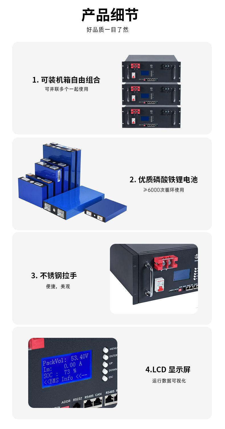 Bateria de lítio 48V montada em rack bateria de fosfato de ferro-lítio 5KW10KW armazenamento de energia bateria de lítio sistema inteligente de emergência doméstica