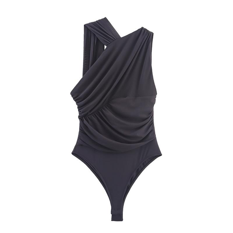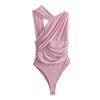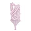 Comércio exterior 2024 primavera nova moda sexy europeia e americana colarinho oblíquo sem mangas plissado macacão rosa mulheres 5039337