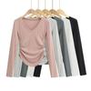 2023 comércio exterior novas roupas femininas manga pilha gola redonda plissada camiseta feminina estilo europeu e americano
