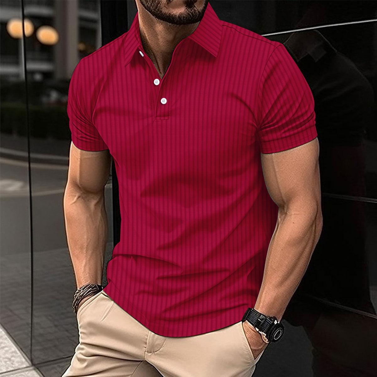 Europeu e Americano transfronteiriço comércio exterior desejo masculino verão esportes fitness casual stretch listra vertical camisa pólo de manga curta homens