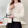 Imitação de veludo de vison simples pulôver de malha curta outono e inverno novo decote em V estilo preguiçoso cor sólida top camisola de manga comprida para as mulheres