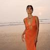 2025 Transfronteiriço Feminino Primavera/Verão Novo Quente Venda Comércio Exterior Moda Sem Costas Sexy Tricotado Vestido de Praia Saída de Praia