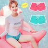 Percy crew neck top, Percy round neck top + letter white vest + black shorts cover, Percy round neck top + let...