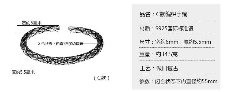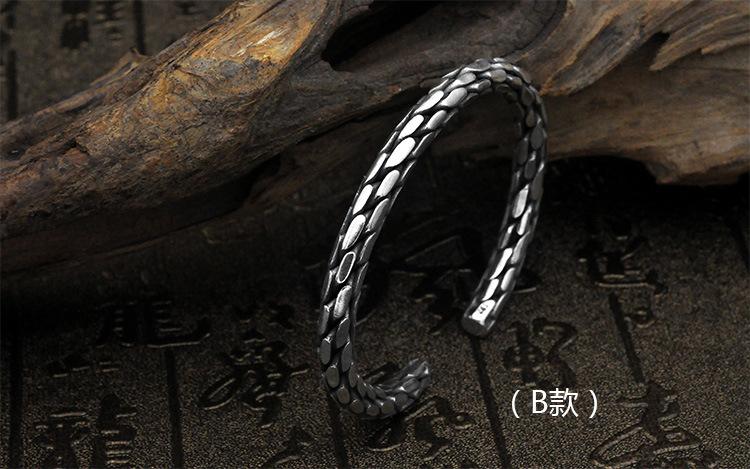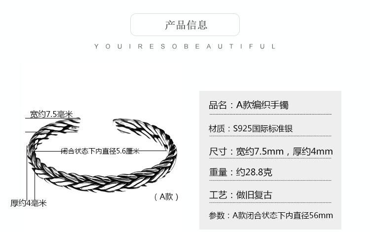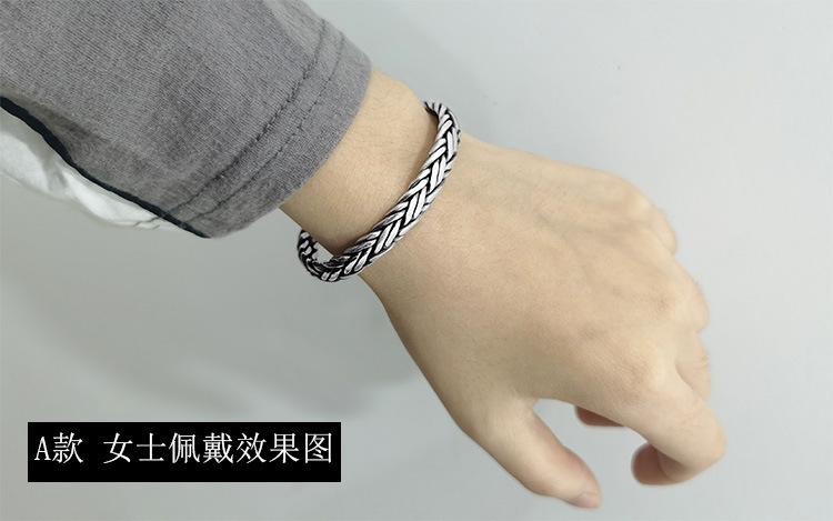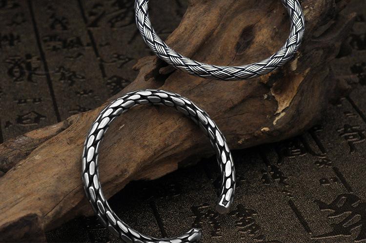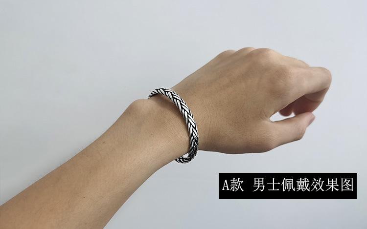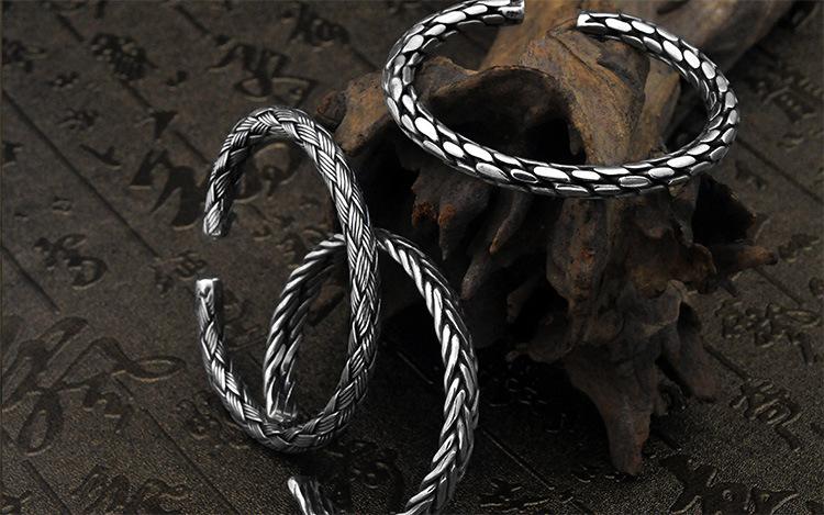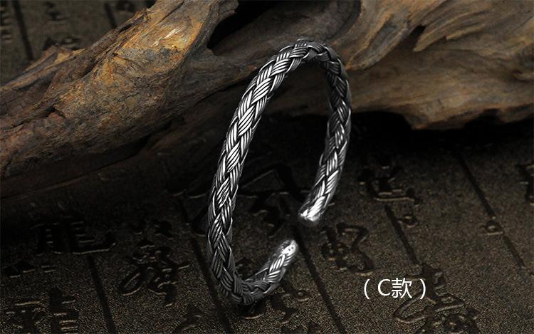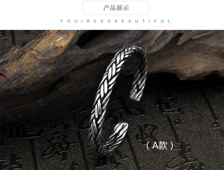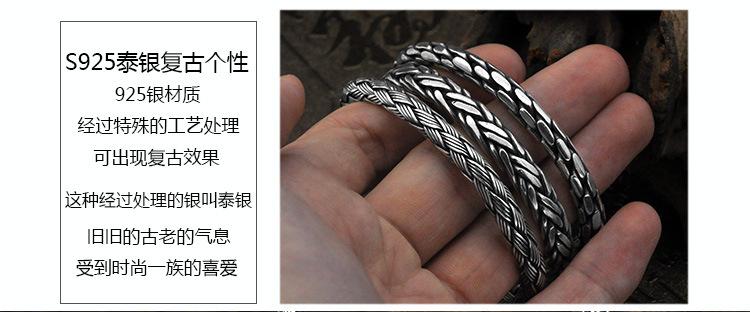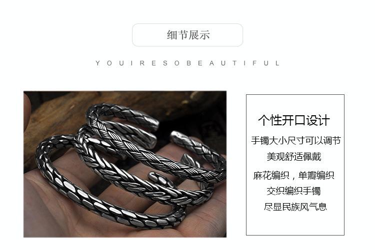 Prata S925 Simples Personalidade Tecido à Mão Prata Tailandesa Pulseira para Homens e Mulheres Estilo Étnico Chinês Retrô Envelhecido Pulseira Aberta