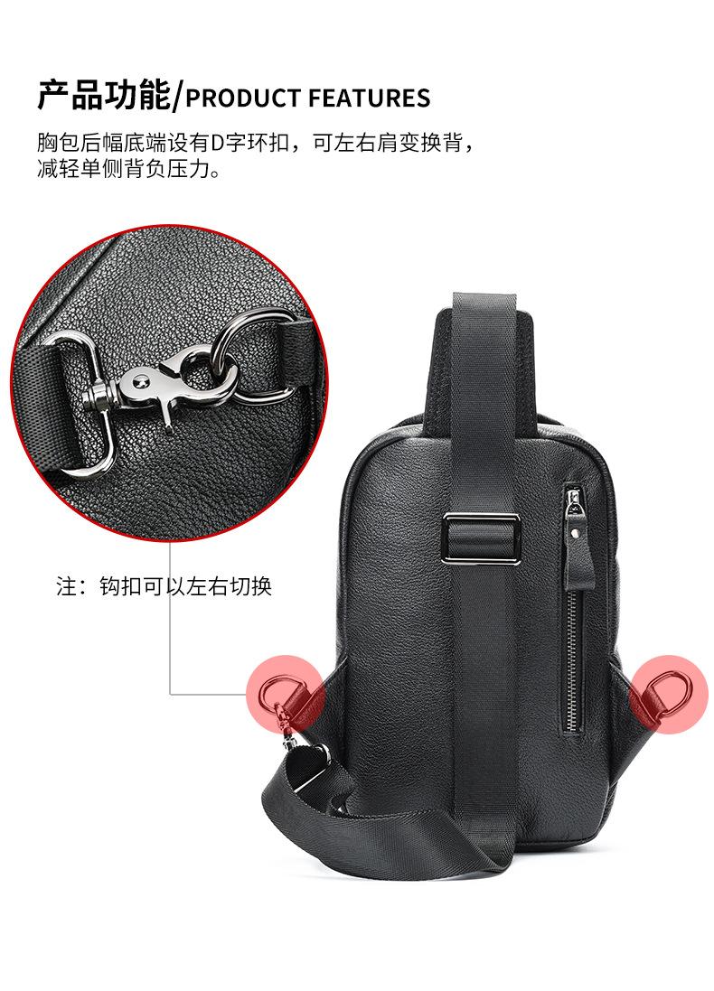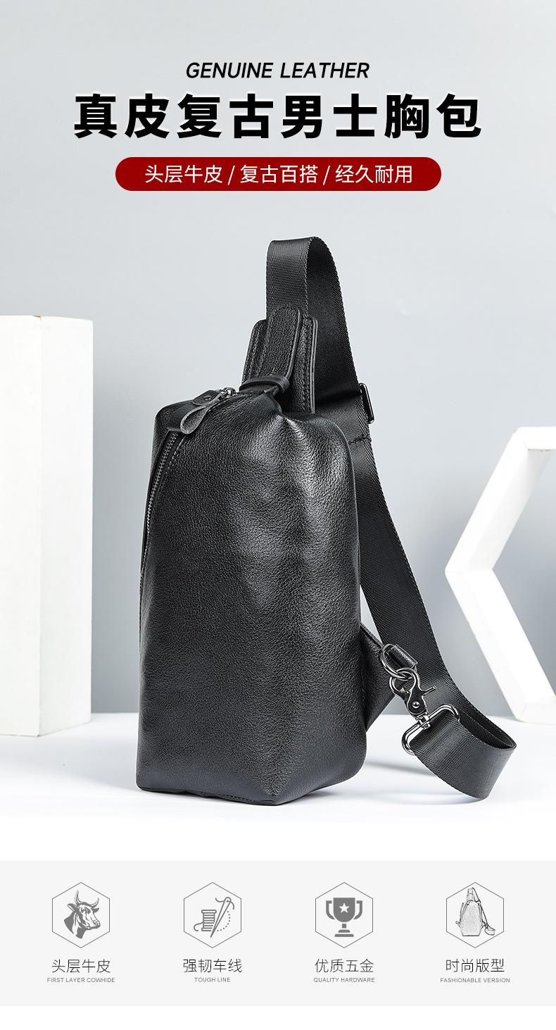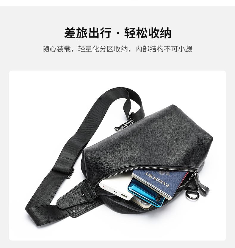 Moda masculina bolsa de peito couro genuíno grande capacidade lazer esportes crossbody bolsa de ombro masculina primeira camada de couro bolsa de peito atacado