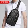 Venda direta da fábrica bolsa masculina de couro genuíno europeu e americano casual couro genuíno bolsa de peito masculino padrão de crocodilo bolsa mensageiro com zíper na moda