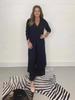 Amazon Cross-Border Roupas Femininas Gola V Manga Longa Fenda Top Longo Calças de Pernas Largas Conjunto de Cor Sólida Moda Casual Japonesa e Coreana