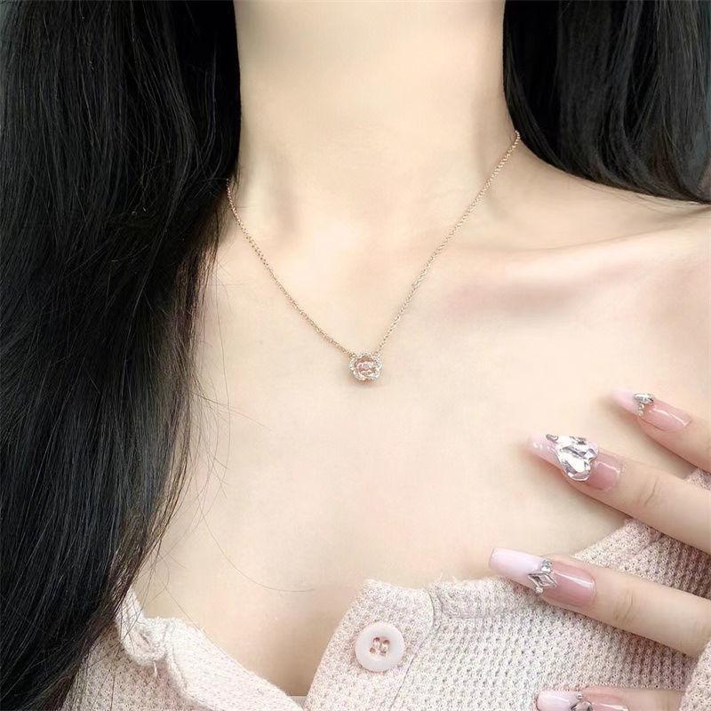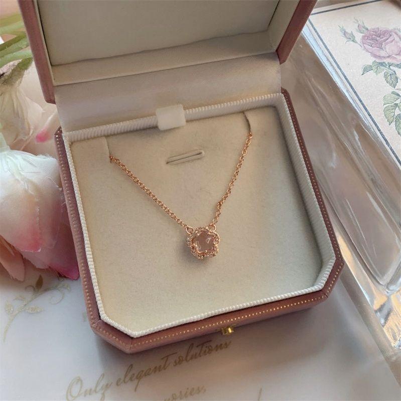 Little Red Book mesmo doce flor de cerejeira elegante colar de fadas linda menina Peach Blossom pingente de clavícula corrente presente para namorada