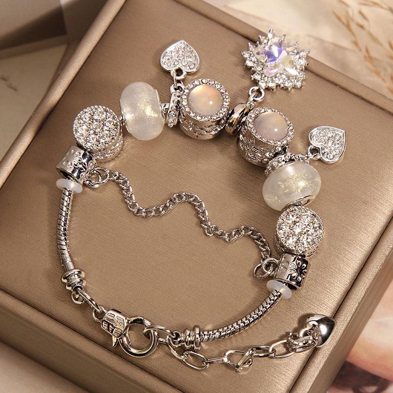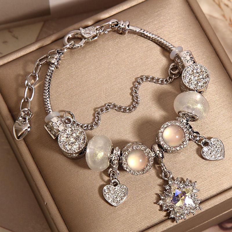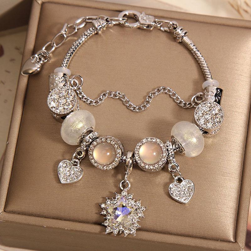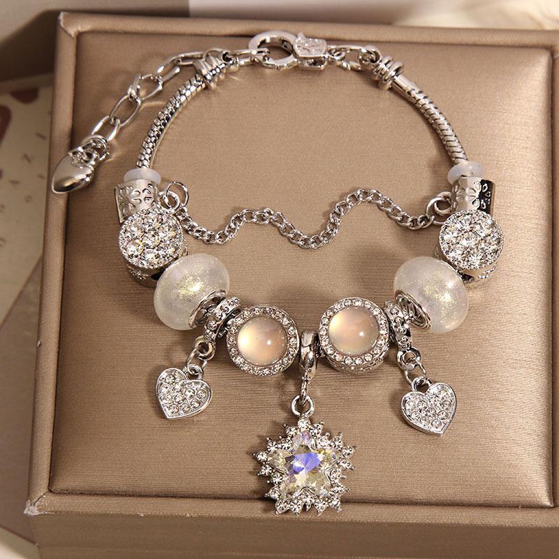 Pulseira Transfronteiriça Estilo Panjia Feminina High-end Retrô Pingente Zircônia Estrela de Cinco Pontas Pulseira Ins Luz Luxuosa DIY