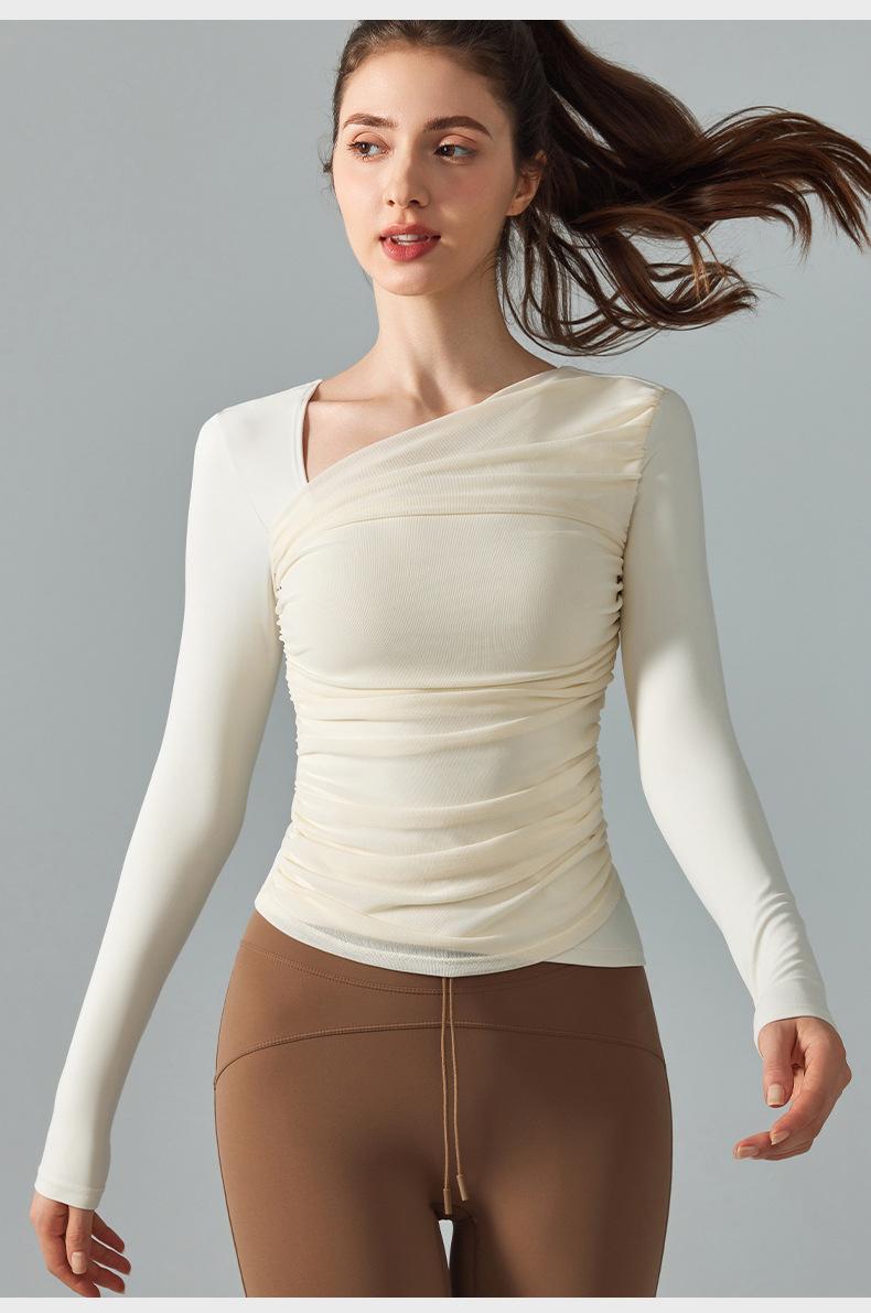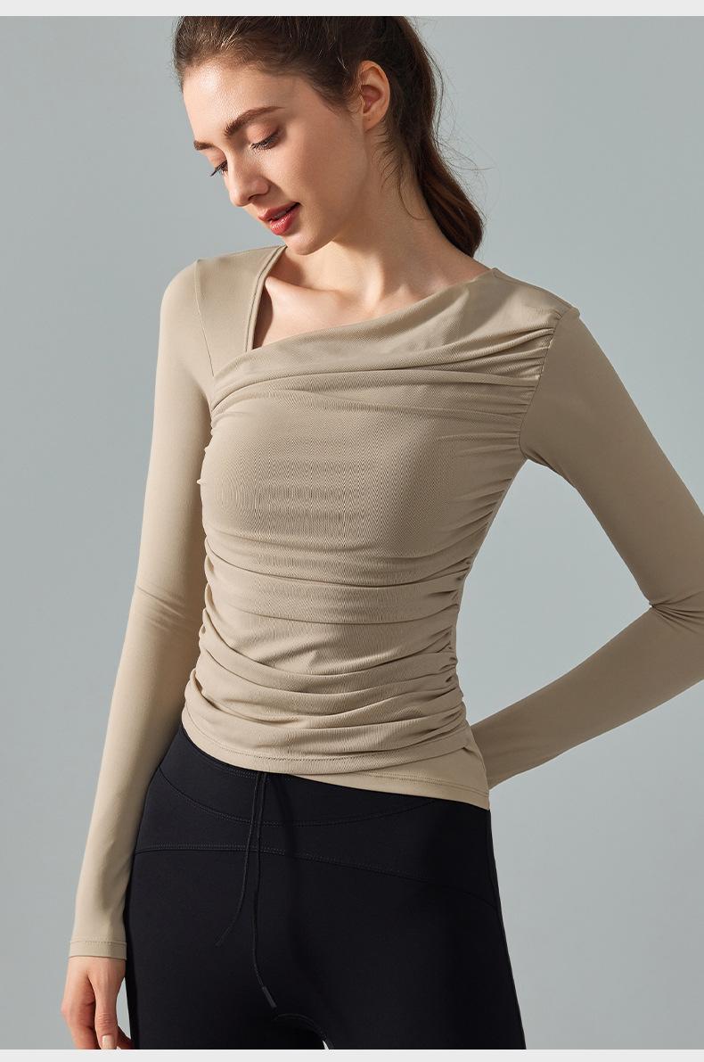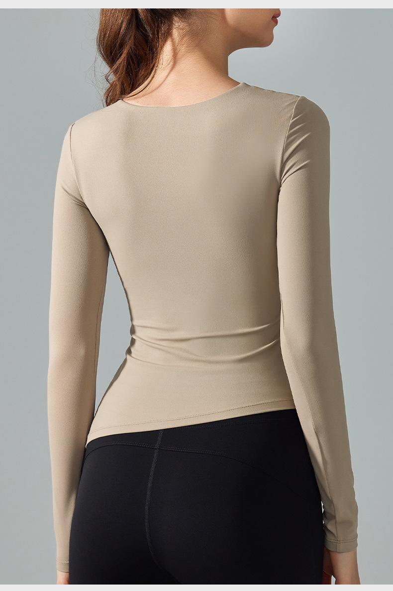 Top esportivo feminino com almofada no peito Roupa Moda Slim-fit Cintura de manga comprida Emagrecimento Pilates Fitness Yoga Terno Outono e Inverno