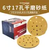 Disco de Lixa com Agranulado Amarelo Sand Force, 6 Polegadas, 17 Furos, Suporte Autoadesivo, Polimento e Lixamento, Ultra Fino