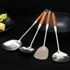 Conjunto de Espátula e Colher de Aço Inoxidável 304 com Cabo de Pau-Rosa para Cozinhar na Cozinha de Casa, Conjunto de Utensílios de Cozinha Resistentes ao Calor e Anti-Escaldantes
