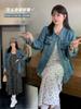Jaqueta Jeans Feminina Plus Size Desgastada com Contraste de Cor Sombra Outono Novo Solta Cobrindo a Carne Top 321587
