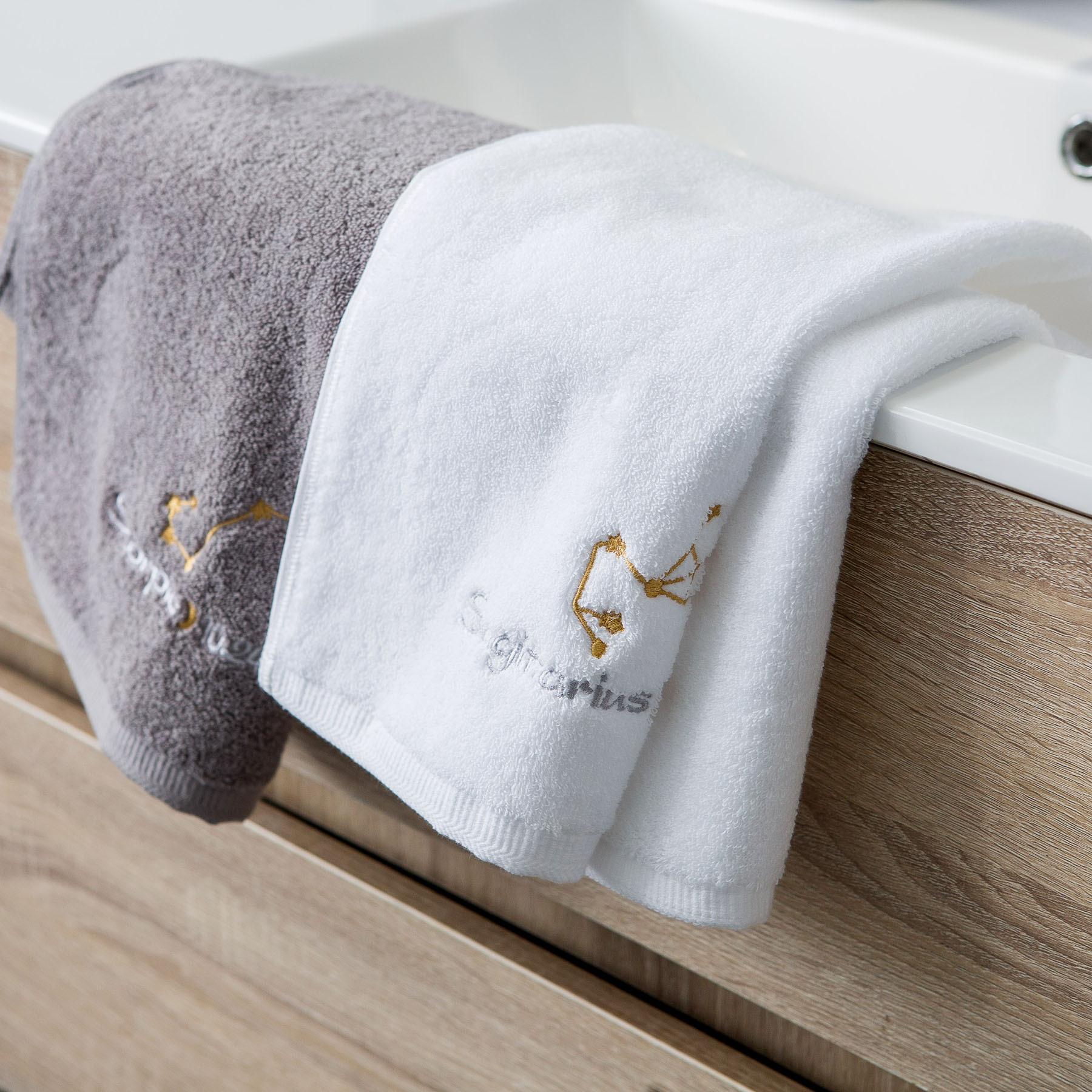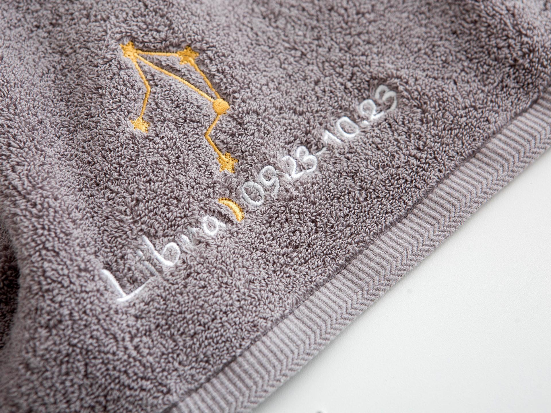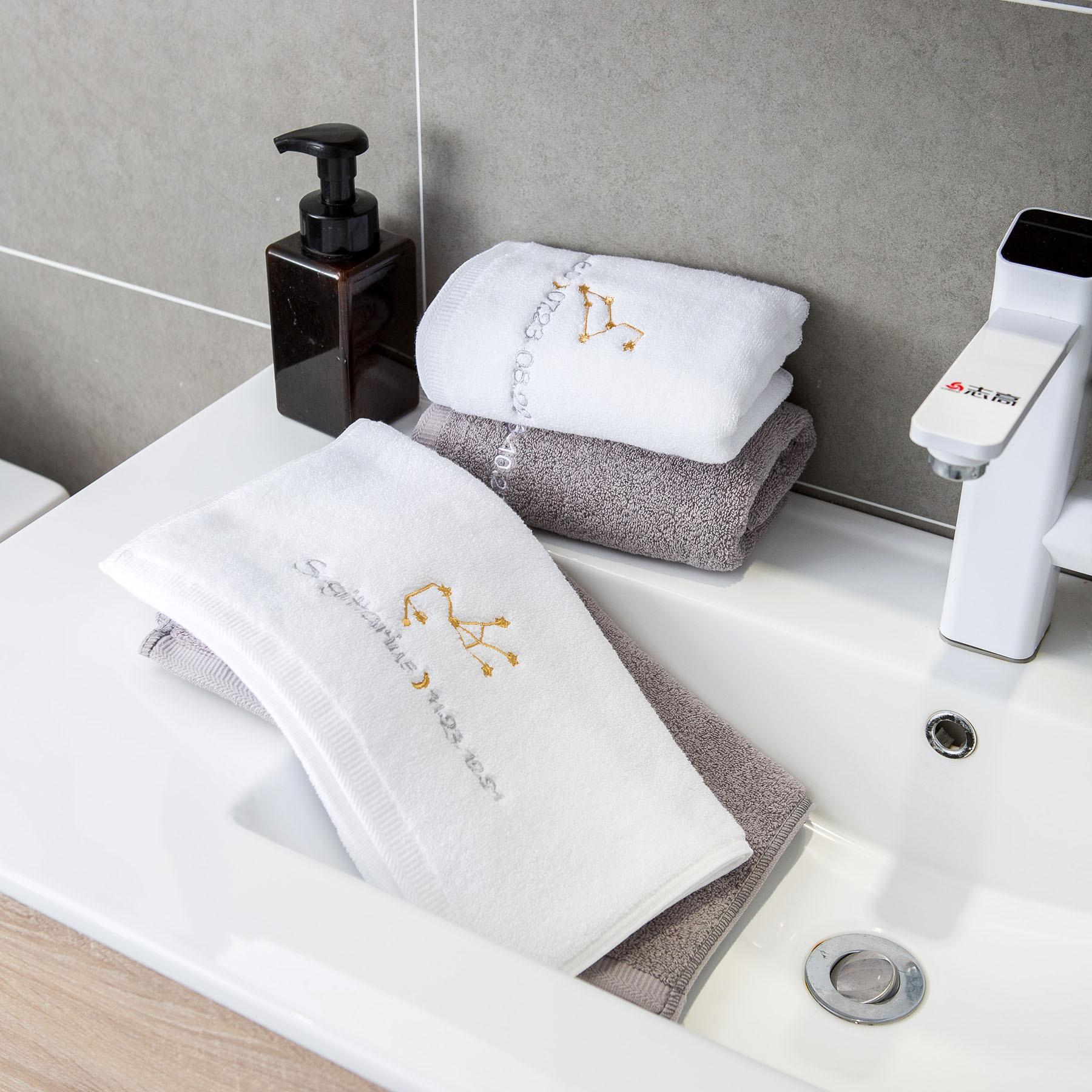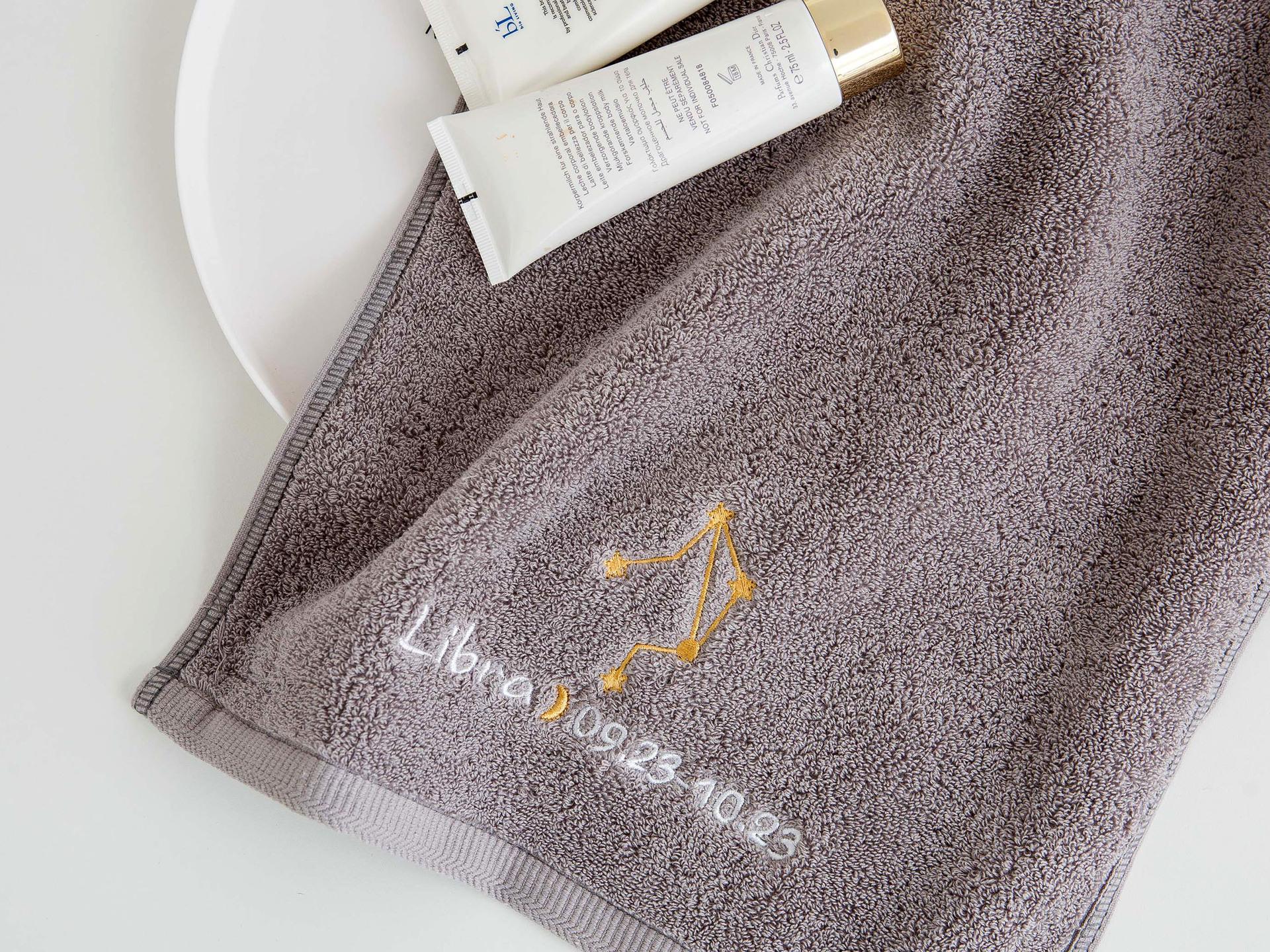 Ponto de venda do produto: Esta é uma toalha da série 12-zodiac, tecida em algodão paquistanês, com boa absorção de água e maciez. Impressão e tingimento ecologicamente corretos combinados com tecnologia de polimento, sem fiapos e sem desbotamento. O bordado requintado da constelação é o toque final desta toalha de banho. O padrão do bordado é composto de quatro partes: o mapa astrológico da constelação 12-zodiac, o nome em inglês da constelação, a lua e a data correspondente da constelação. É lindo e tem um significado muito exclusivo. O branco e o cinza clássicos são usados na seleção de cores, o que é adequado para uma gama mais ampla de grupos.