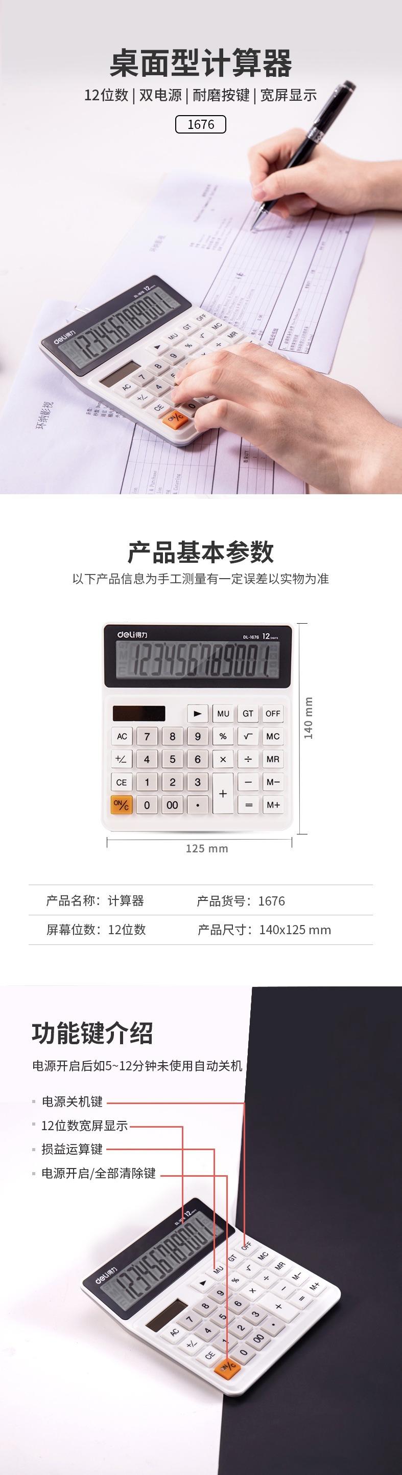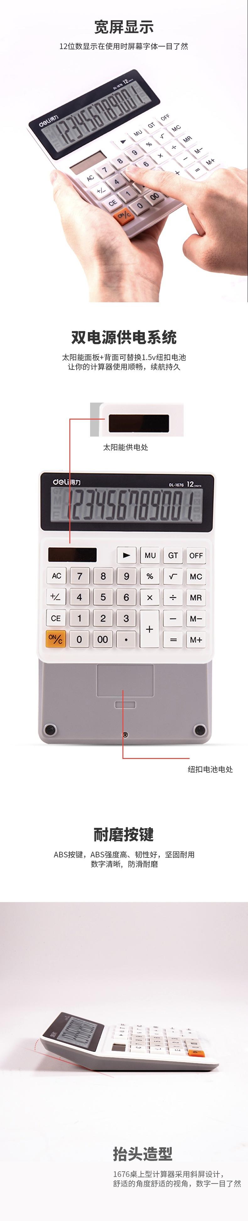 Deli 1676 Calculadora Solar Dual Power 12-Bit Tela Grande Computador Teclas Grandes para Estudantes de Negócios Financeiros